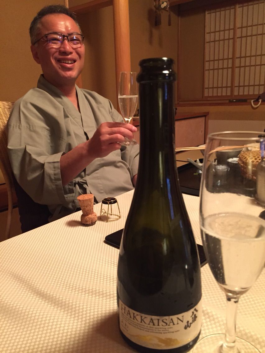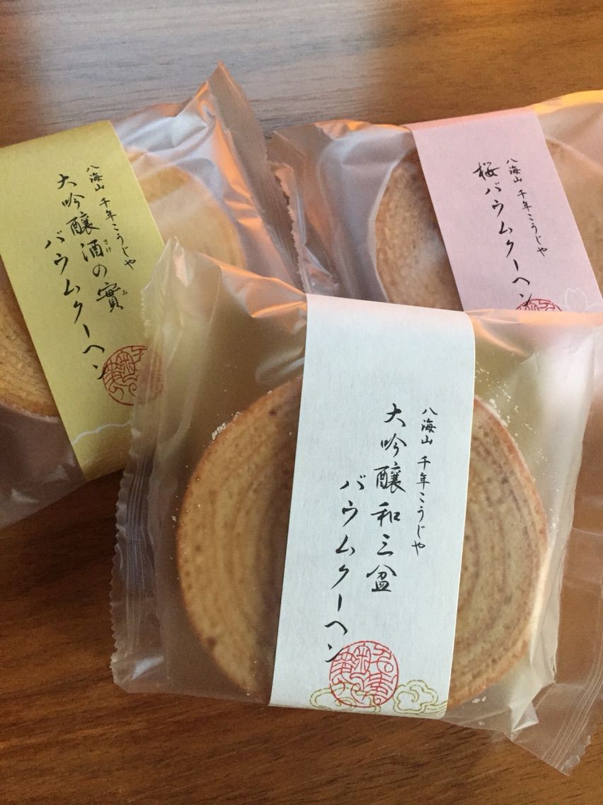 特別な八海山をご馳走になりました シャンパングラスで頂く 和食にぴったりの発砲日本酒です。 今日グランドオープンの銀座GSIXにも 「千年こうじや」という八海山のお店を出店して、超ご多忙の南雲社長様です。 貴重なお酒だそうで ふきやでもお出しできるようになりましたら またお知らせ致します 楽しみですね そうそう 八海山には、しっとり美味しい バームクーヘンもあるんですよ