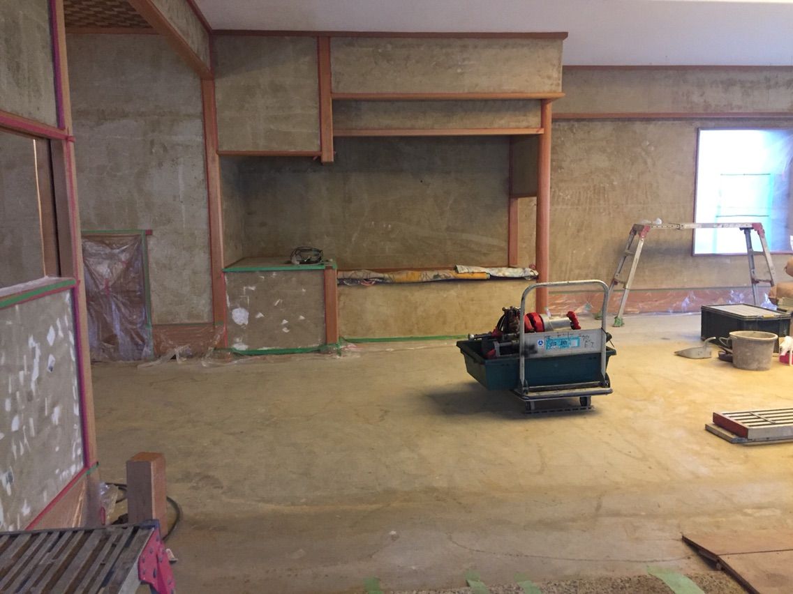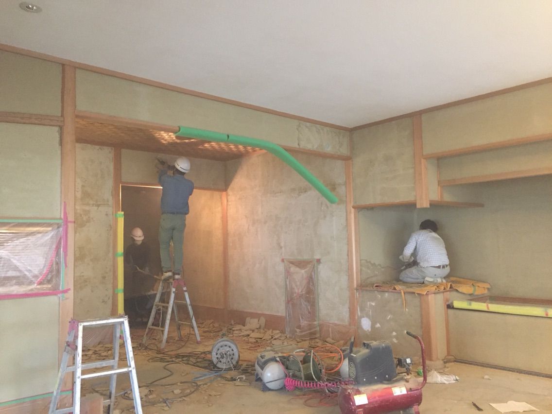 まずは、玄関の古い聚楽の壁を取り除きます。
