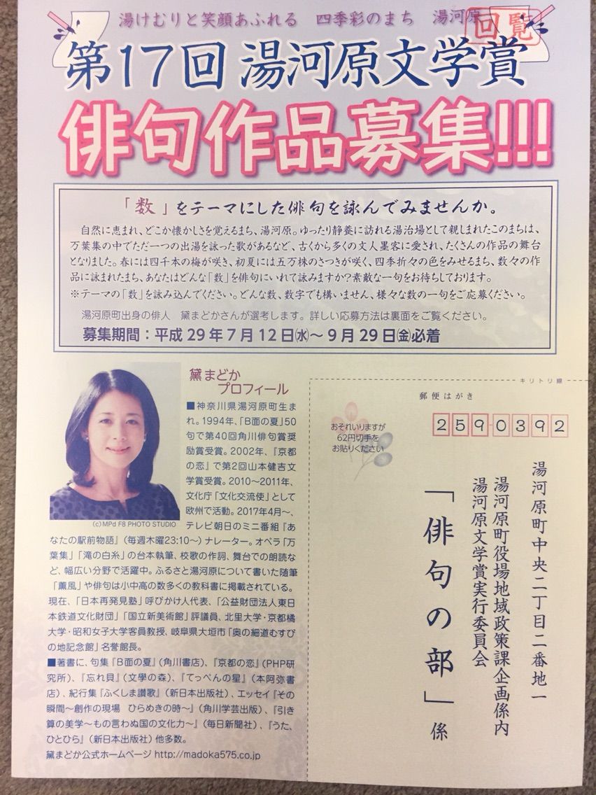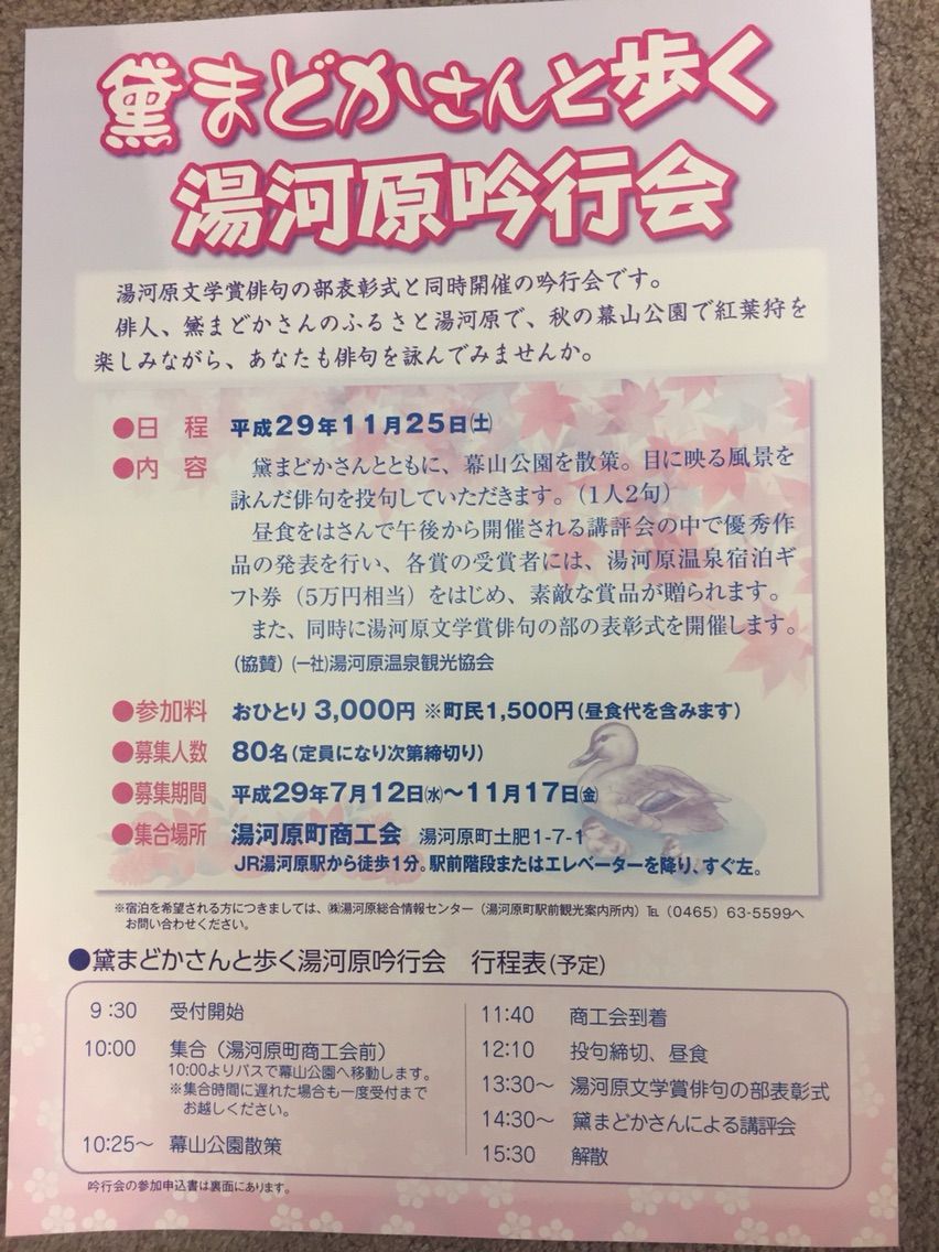 表彰式当日は、黛まどかさんと歩く湯河原吟行会も同時開催します。