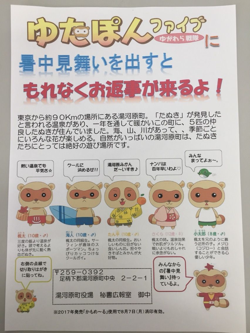 湯河原のゆるキャラゆたぽんに暑中見舞いを出すと