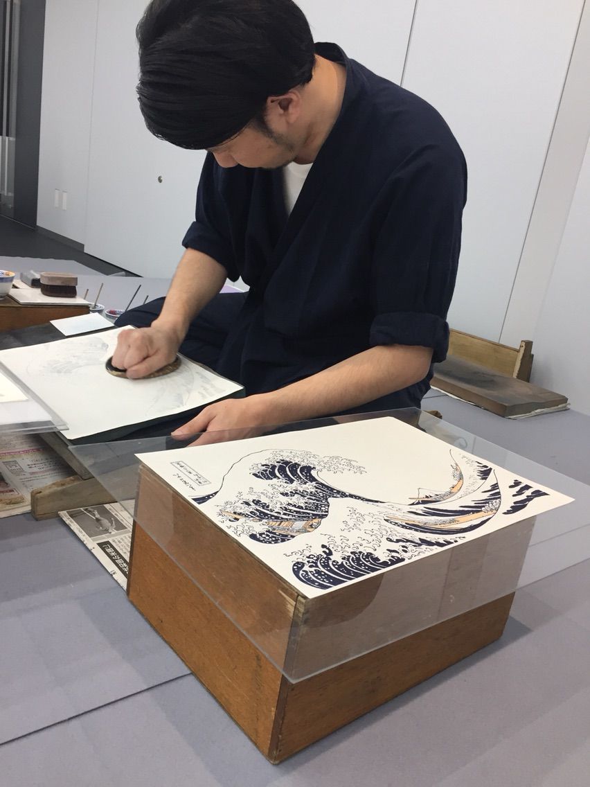 版画は、絵師、彫師、摺師、全員の職人技で出来上がります。