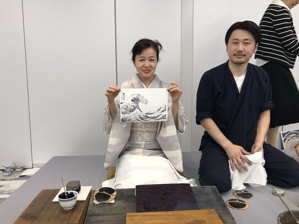 木版画の摺り実演と体験がありました![]()