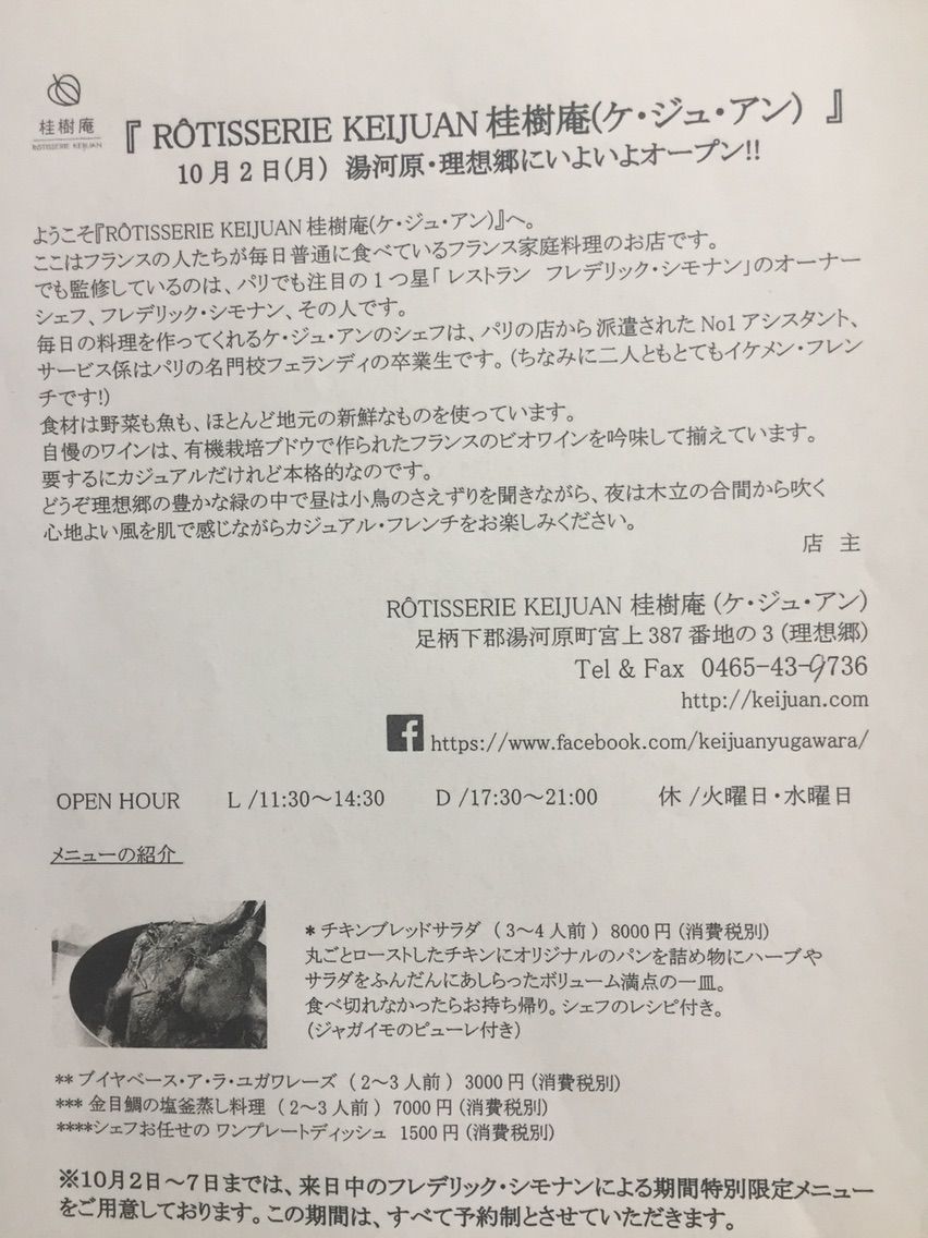 「ロティスリー桂樹庵(ケ・ジュ・アン)」オープンしました