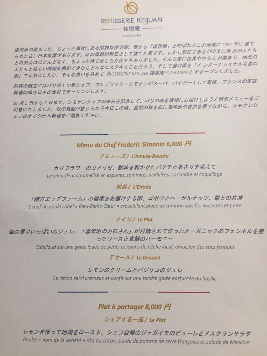 10月7日まではシモナンシェフ来日特別限定メニューです。
