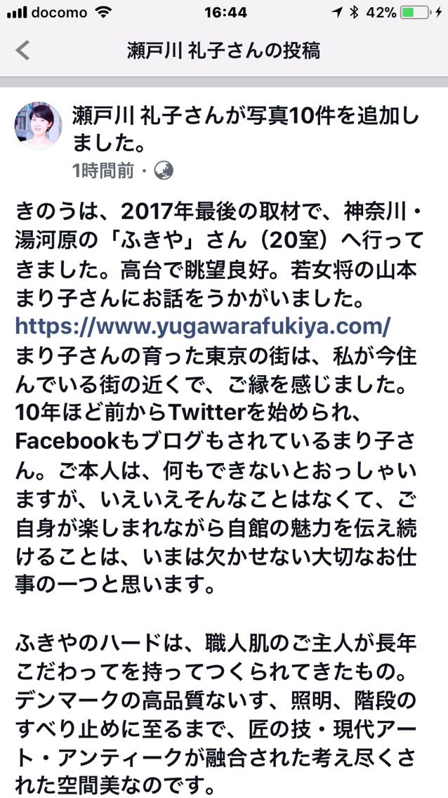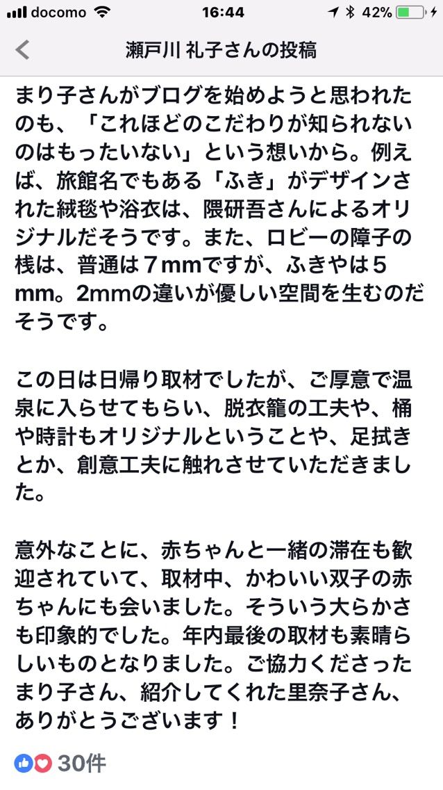 昨日の瀬戸川さんが フェイスブックにふきやを アップしてくださいました。 写真も素敵で感激しています