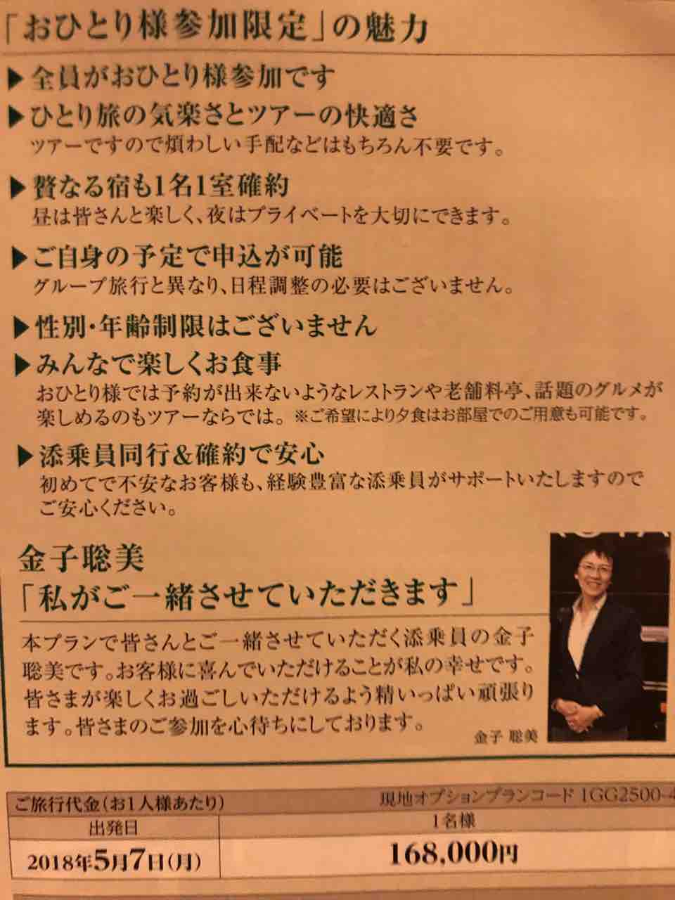 特別なツアーのご案内です JTBロイヤルロード ラグジュアリーバスで巡る夢の休日 全員がお一人様参加です。 ふきやでのお部屋もお一人様一部屋。 お食事は皆様で楽しく頂ます。 添乗員さんも同行なので安心して 一人旅をお楽しみくださいませ