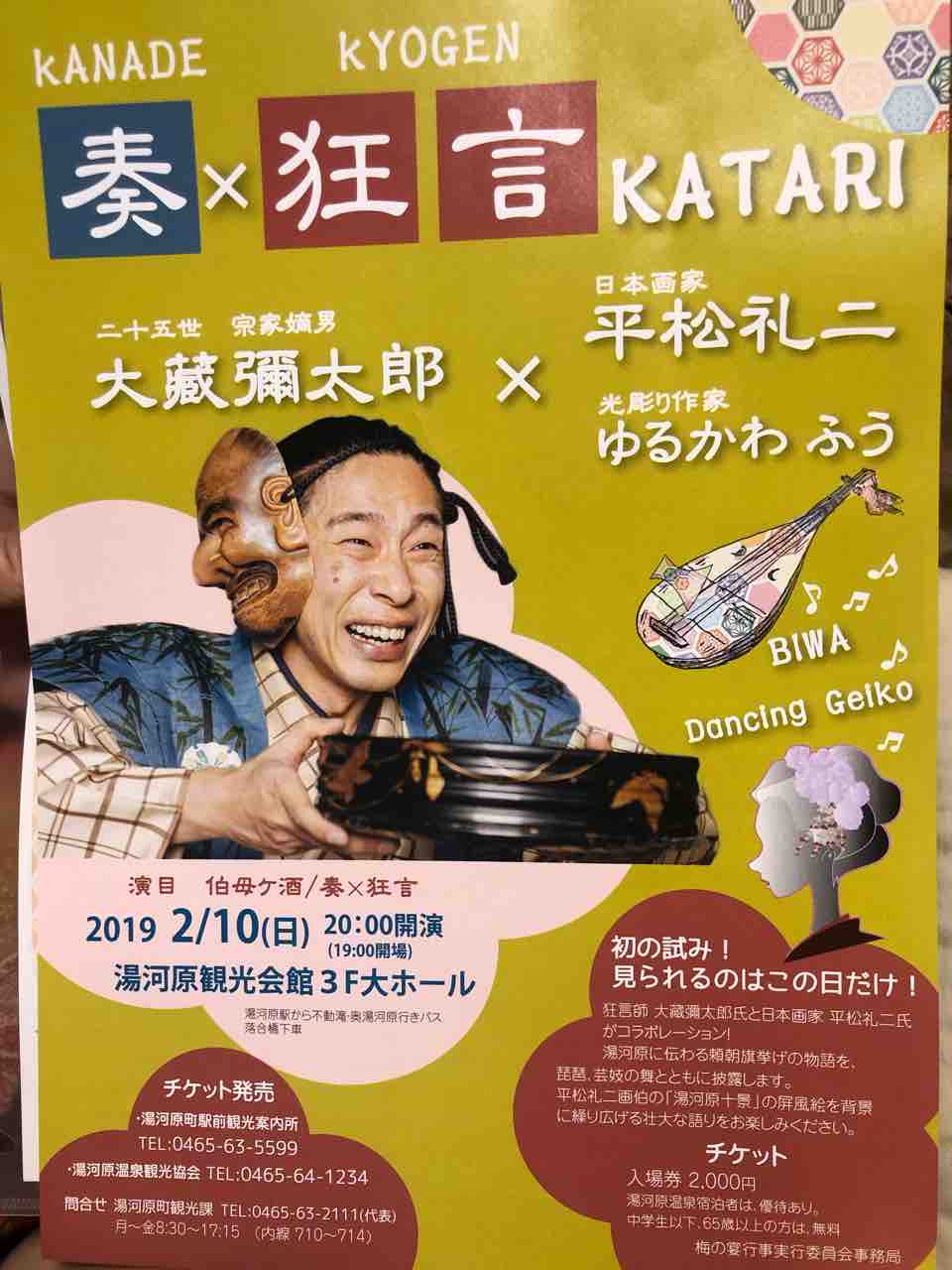 2月10日(日) 20時開演(19時開場) 湯河原観光会館 湯河原駅から不動滝・奥湯河原行きバス 落合橋下車 お問い合わせ 湯河原町観光課 0465-63-2111 月~金8:30~17:15 (内線710~714)