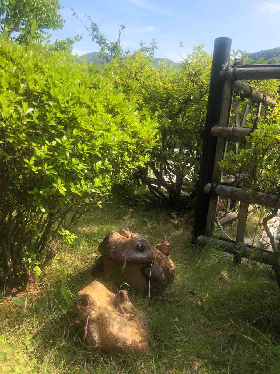 縁起の良い置物の蛙がいます。