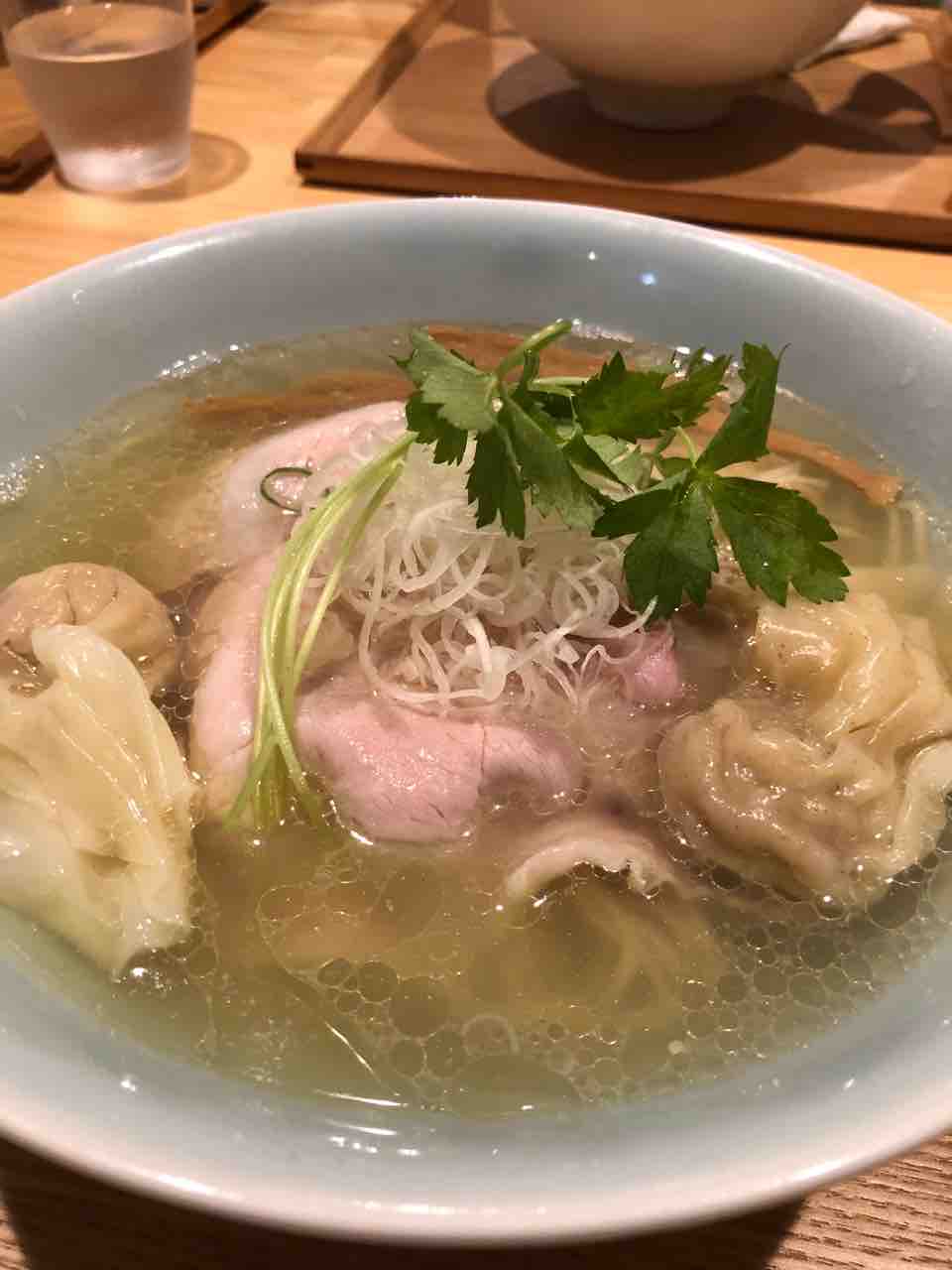 朝7時の整理券配布にむけて並びます。 6時20分到着。 雨の中すでに行列が出来てました。 6時50分くらいに 配布が始まり74番でした。 午前中の仕事を終えて 1時集合なので、少し前に再び到着。 順番に食券を購入して 少し経つとお店に入れました。 前回はこの時点で30分以上待ちましたが 今回はとてもスムーズ 塩ワンタン麺にしました。 いつ見ても綺麗なラーメンです。 次回は醤油にしようと思います。 優しい食べ心地の細麺ですが ボリュームはかなりあります。 肉ご飯 これは息子が追加注文。 連休中の仕事の合間でしたが テンションあがりました