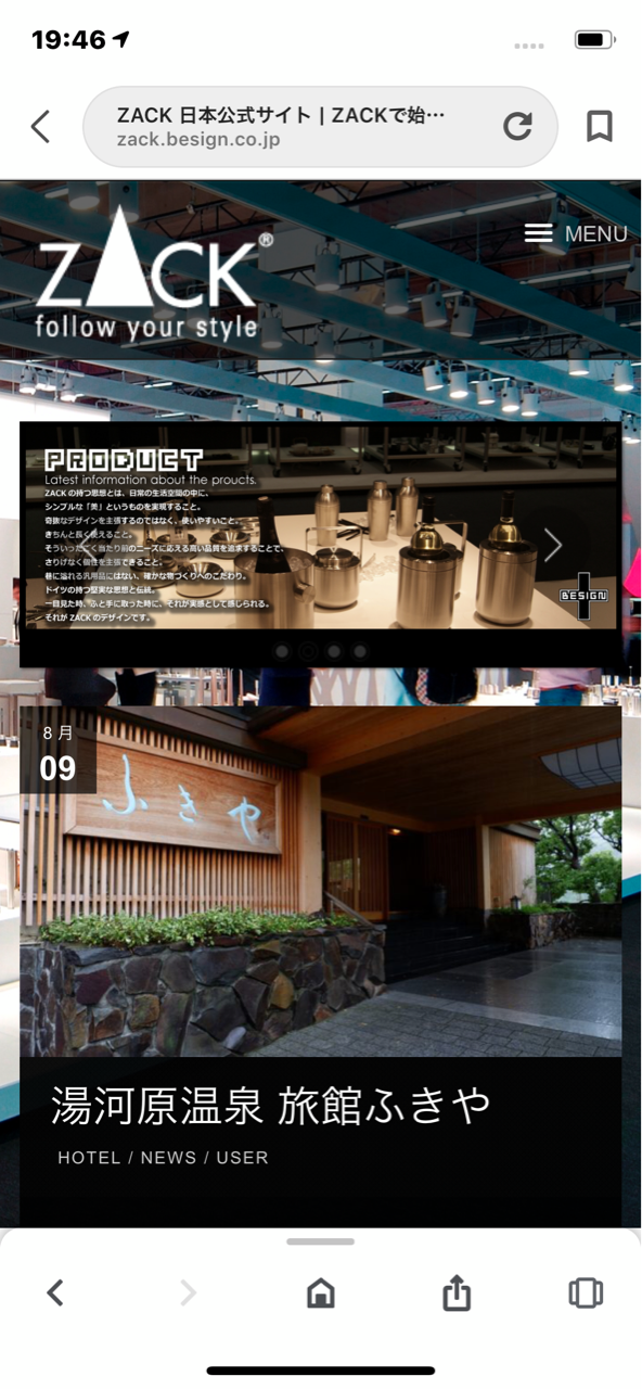 ドイツのZACK社は ステンレス製ハウスウエアの会社です。 ZACKのHPの表紙に なななんと「ふきや」が出ています。 ふきやの館内の洗面所に 色々探した結果 ZACK社の拡大鏡を置いているからでした。 https://zack.besign.co.jp/ ふむふむなになに 京都のグランビアホテルでも使っているのですね