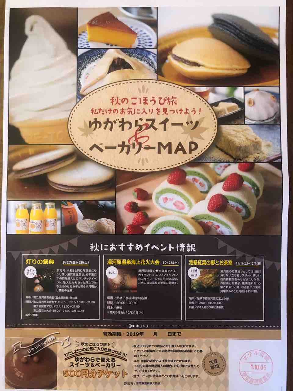 ※ふきやスタンダードプランに湯河原で使える500円チケットとスイーツMAPがついた期間限定のプランです。
