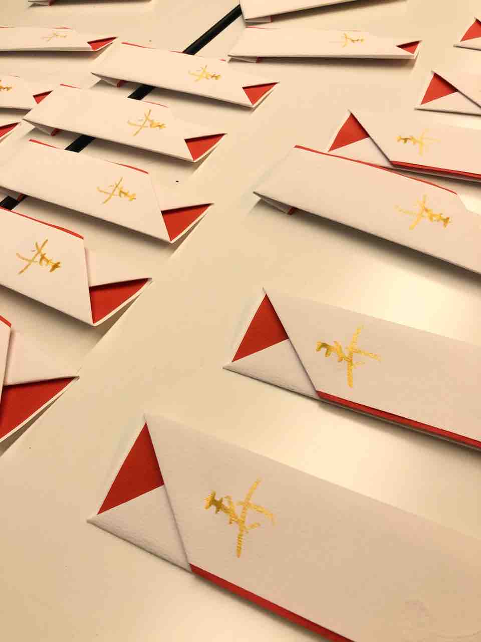 紅白の和紙を折って