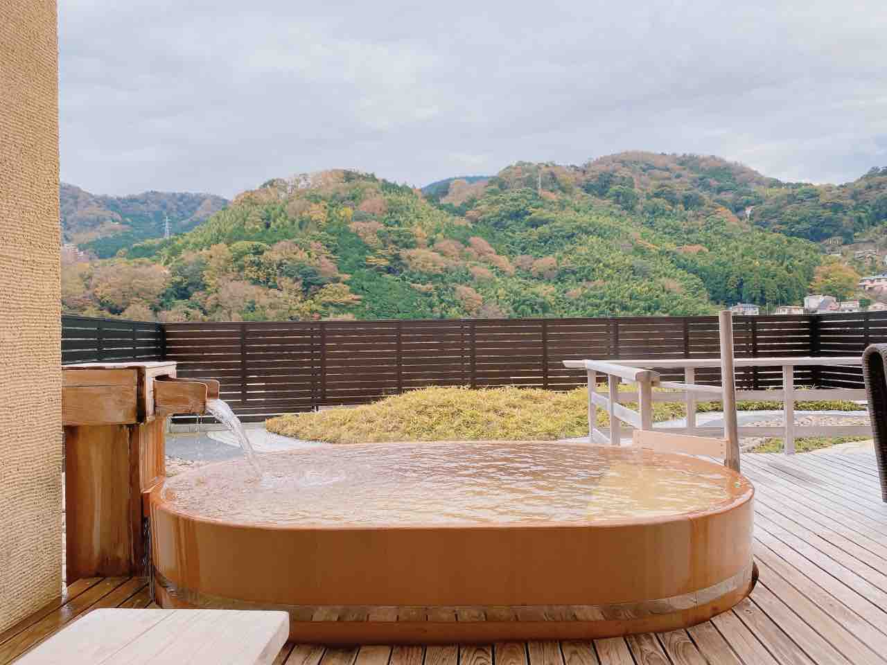 3階貸切露天風呂神社仏閣に使われる紅檜を使っております。樹齢3000年直径2メートル50センチもある木です。 台湾のパワースポット阿里山にある日本が作った森林鉄道で運ばれてきました。以前は沖縄の首里城にも使われておりましたが今はもうないかも知れない貴重な木材でできています。 少し赤みのある木です。どうぞご堪能くださいませ