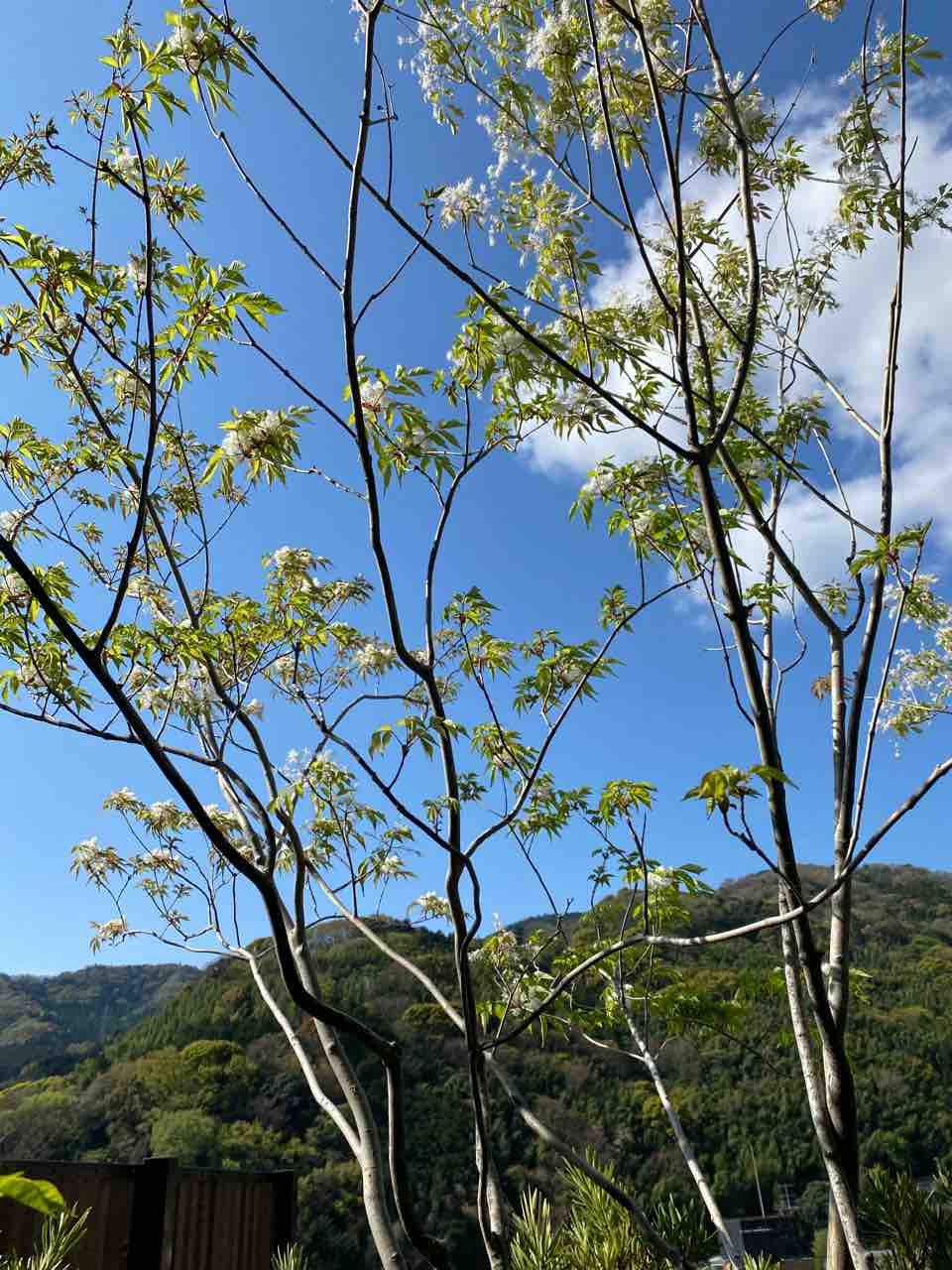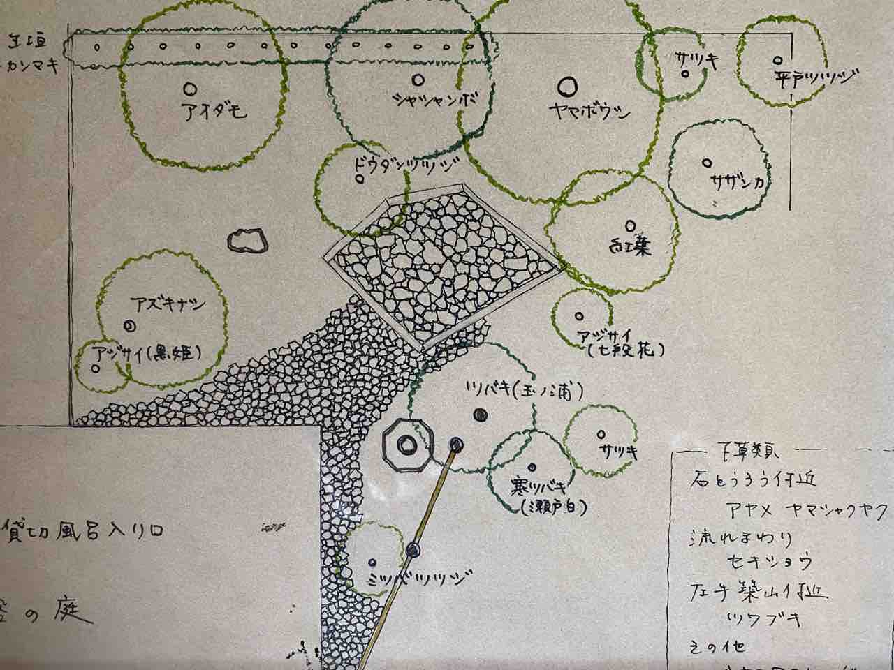 3階エレベーター前の庭の「アオダモ」の木に花が咲きました写真真ん中の背の高い木です。花が見えるように簾を外しました。 庭のデザイン画がテーブルの上に書いてあります。 ヤンキースのイチロー選手や松井選手が日本で使っていたのが「アオダモバット」で、バット材の王様と呼ばれます。 アオダモは成長が遅くバット材になるには70年以上の年月が必要になるそうです。 ふきやのアオダモはまだスリムなのでバットになるのはかなり先になりそうです