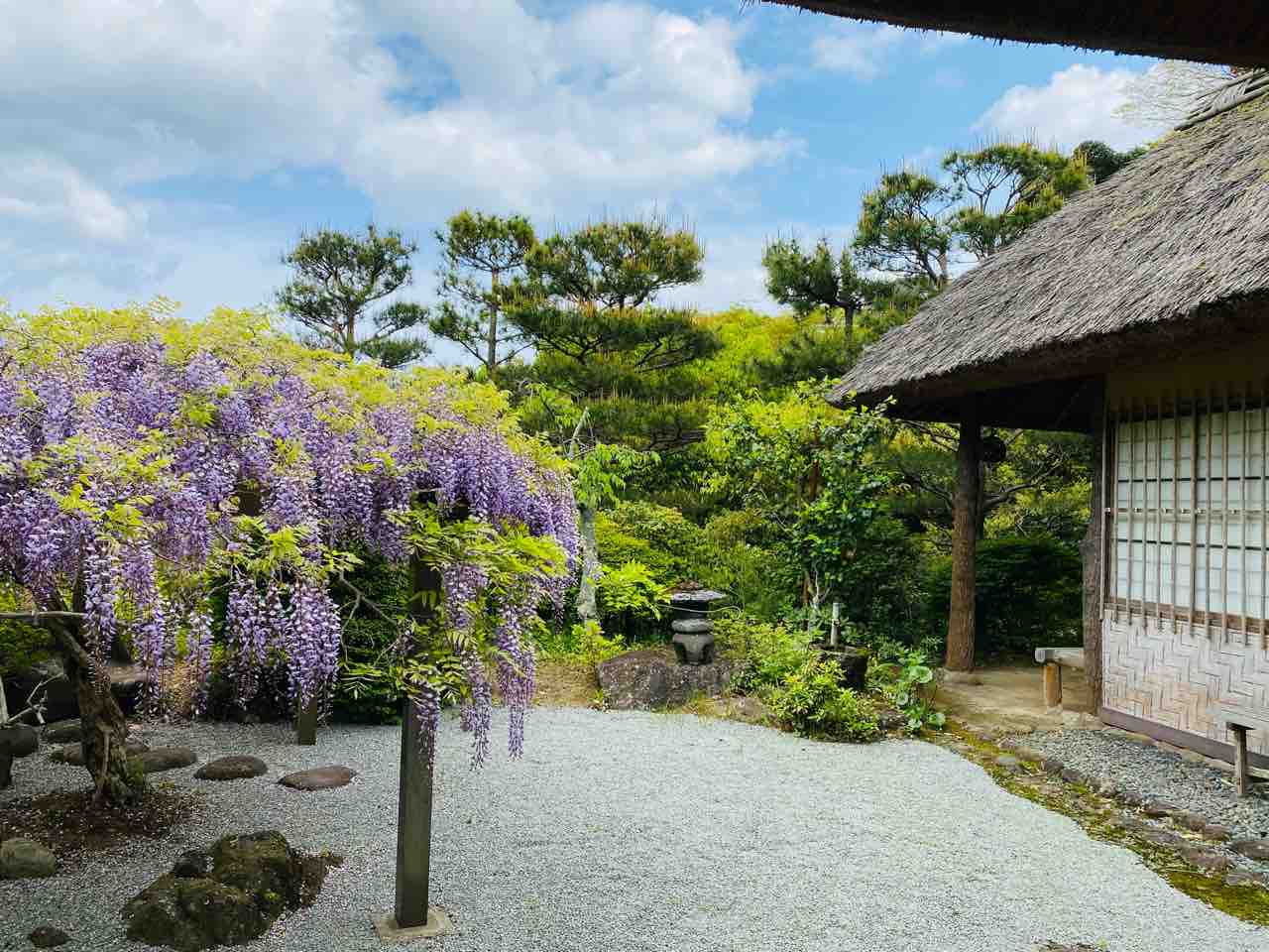 万葉亭の藤の花が満開