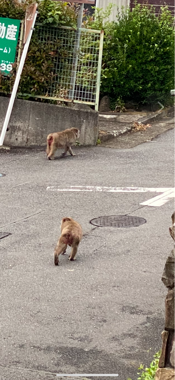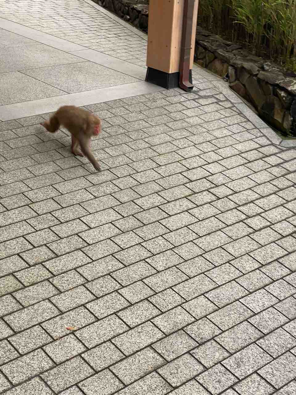 ここのところお客様が少なく細々営業しております。あ、チェックインされる方が…と思ったら野生のお猿さんでした。 よく見るとお腹に子供が、ぶら下がっています。お父さんも一緒ですね。 たまに出没しますのでお気をつけてくださいませ