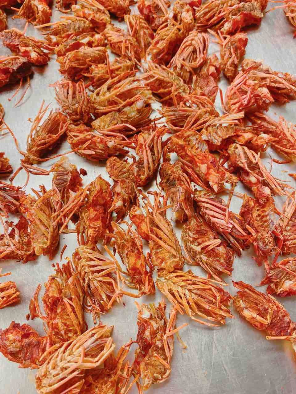 海老の深い味わいが大好評の海老塩。 ふきや調理部の海老ちゃんといううら若き美しい女性が作っております 材料は車海老の頭と焼塩のみ。まず頭のツノの固いところを外します。オーブンで1時間以上カリカリになるまで焼きます。130度です。 カリカリしてとっても美味しいおつまみの出来上がりです ミキサーにかけてからこします。 粗い部分は、集めてさらにミキサーにかけます。 三分の一の焼き塩を加えてさらにミキサーにかけてやっと出来上がりです 販売はしておりませんが、 夕食時に、お刺身と一緒に出ます。どうぞ味わってくださいませ