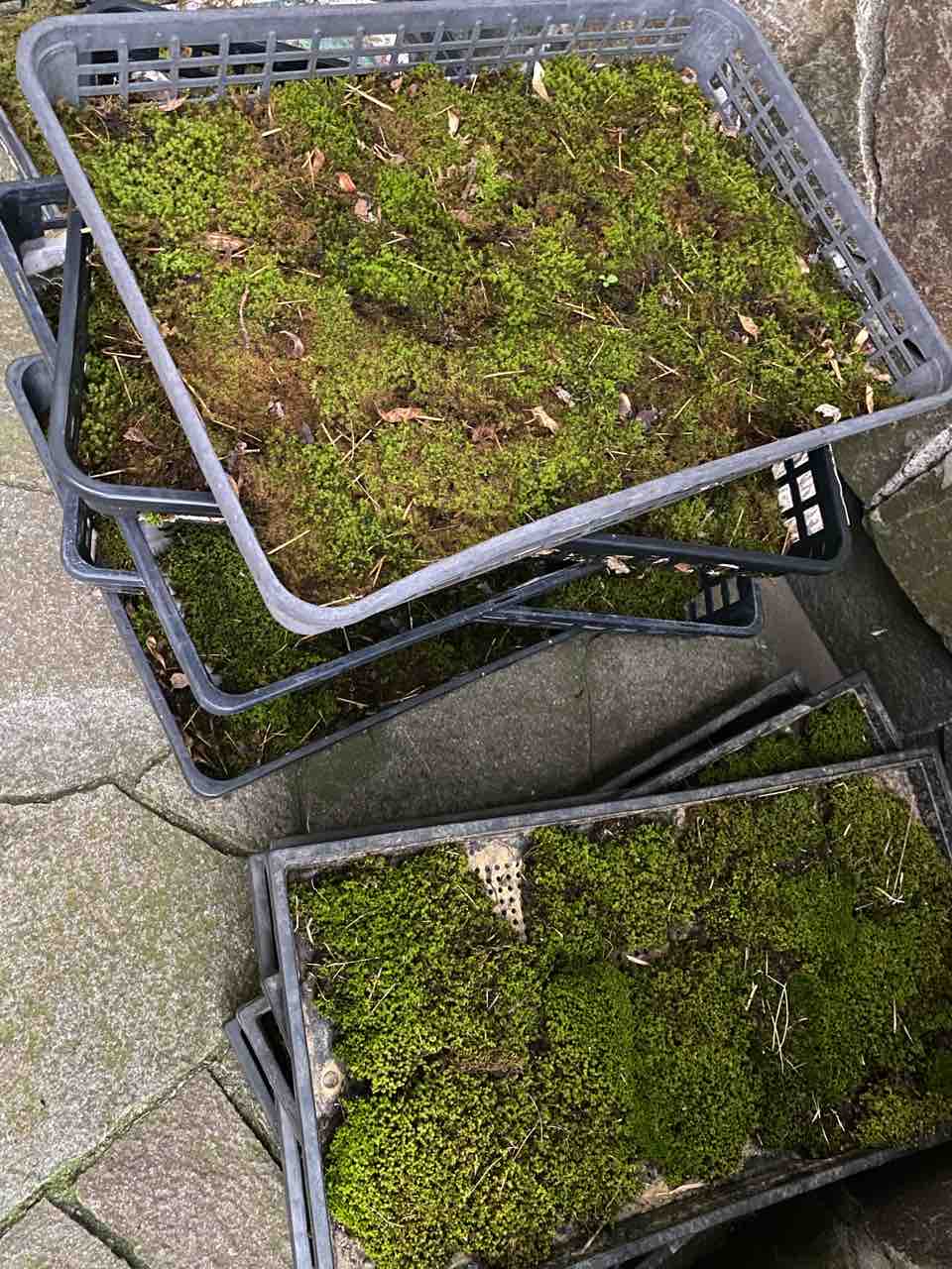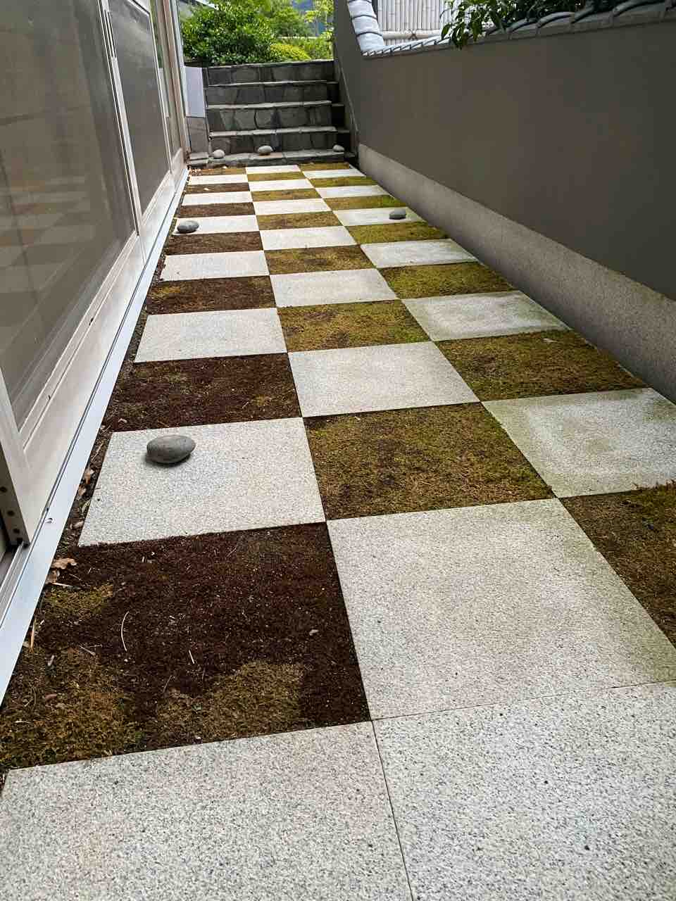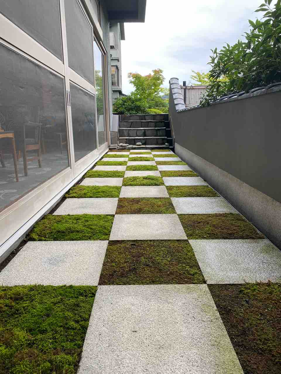 お庭を綺麗に維持管理するのは大変なことです。ふきやでは番頭さんや、湯河原の峯造園さんそして定期的に京都の中村さんに来て頂いています。 たとえば玄関は日当たりが良いのですぐに苔の色が悪くなってしまいます。三種類の苔を、使っています。 綺麗な色になりました