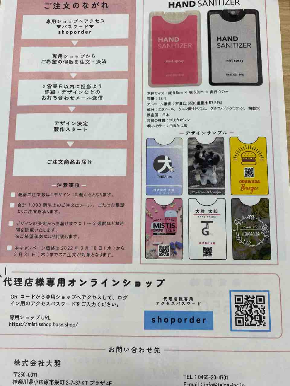 アルコール消毒液がシュッと