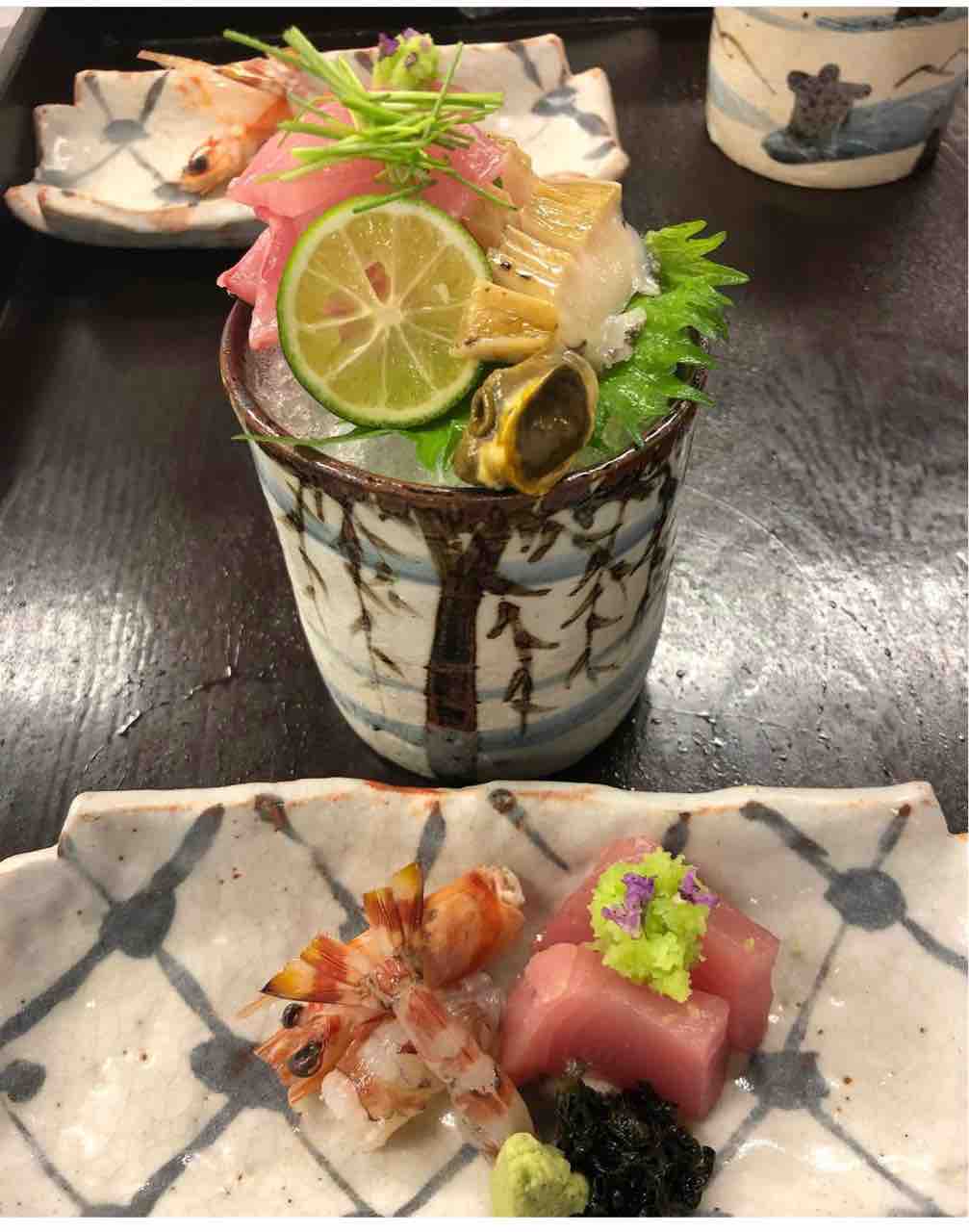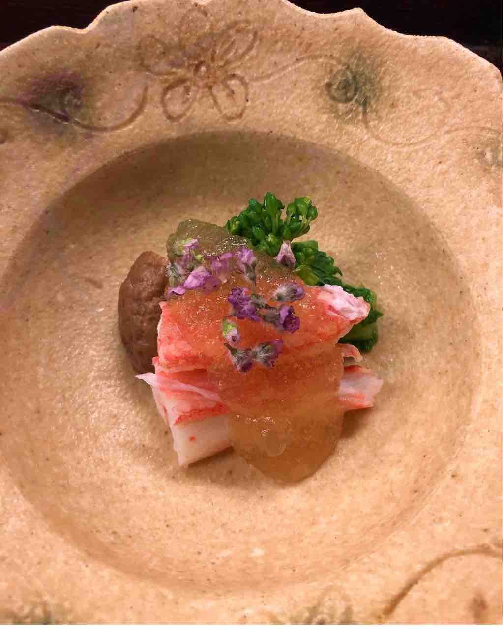 鮑の肝と山菜