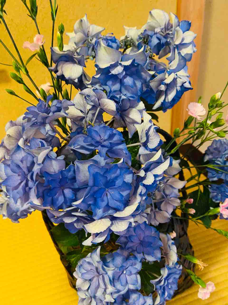 小田原 籠清さんの花シリーズかまぼこを頂きました高タンパク低カロリーの蒲鉾は暑い夏にぴったりです 紫陽花カマボコがありました。 ふきやのフロントにも紫陽花を飾りました。 カサノバという新種でカサノバブルーと呼ばれる色とフリルのような美しい形の花が特徴です