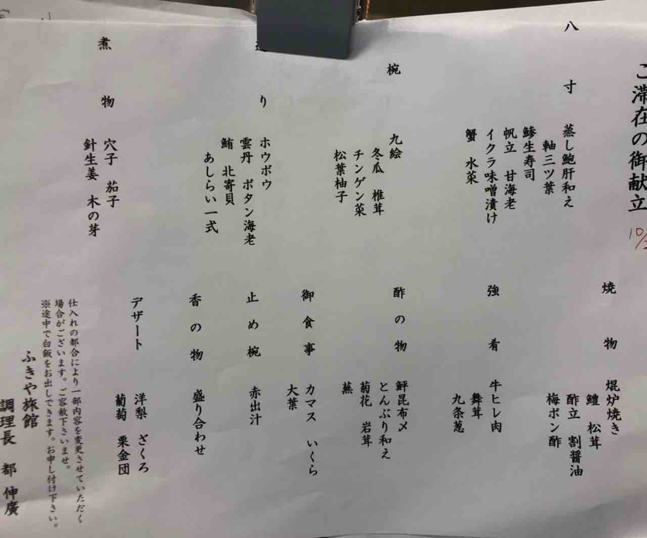 ご滞在のお献立