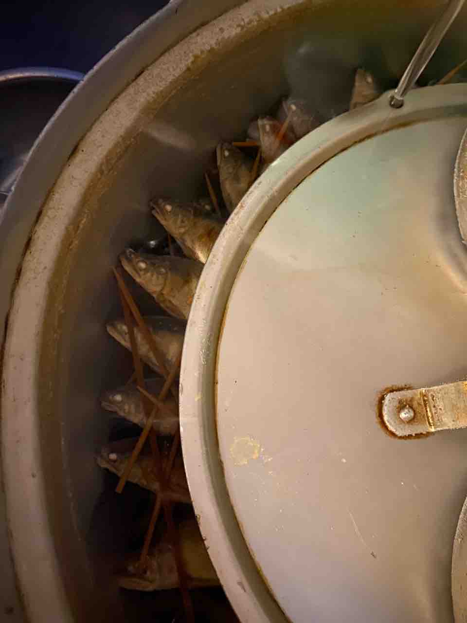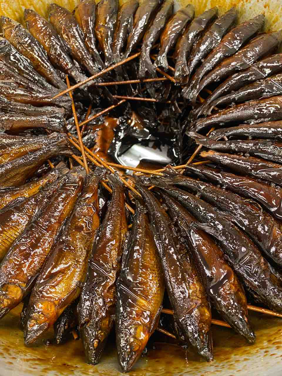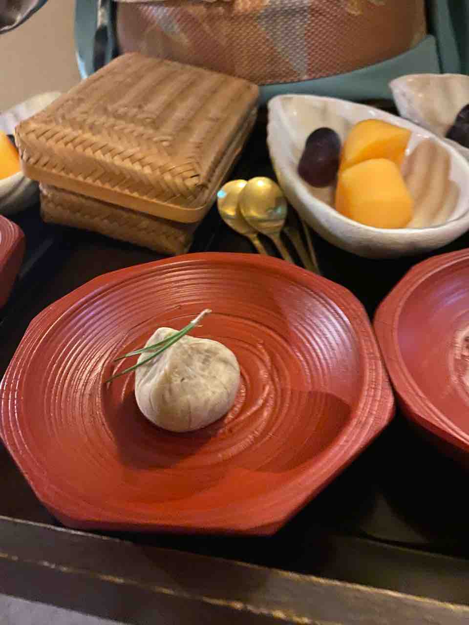 今日のご滞在様のデザートは板長特製栗きんとん。丹波産ノリビス農園さんの栗をオーブンで焼いてからつぶして仕上げました板長の丁寧な仕事ぶりは美しく、見てても楽しいです こちらは子持ち鮎の甘露煮。先付け用です。丸2日かけて煮ます。途中でお酢を入れるの骨を柔らかくするコツだそうです