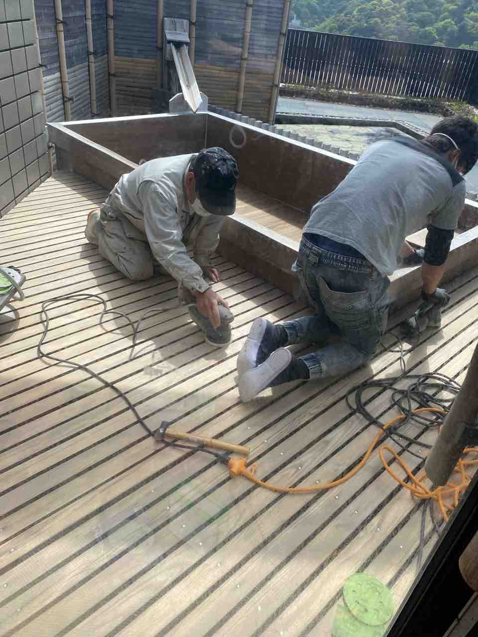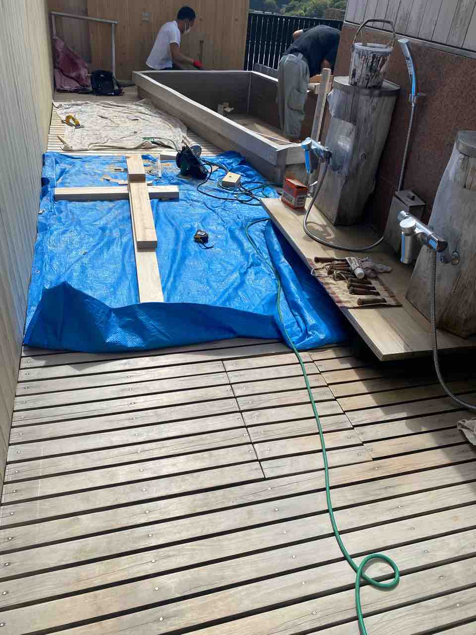 屋上露天風呂の修理