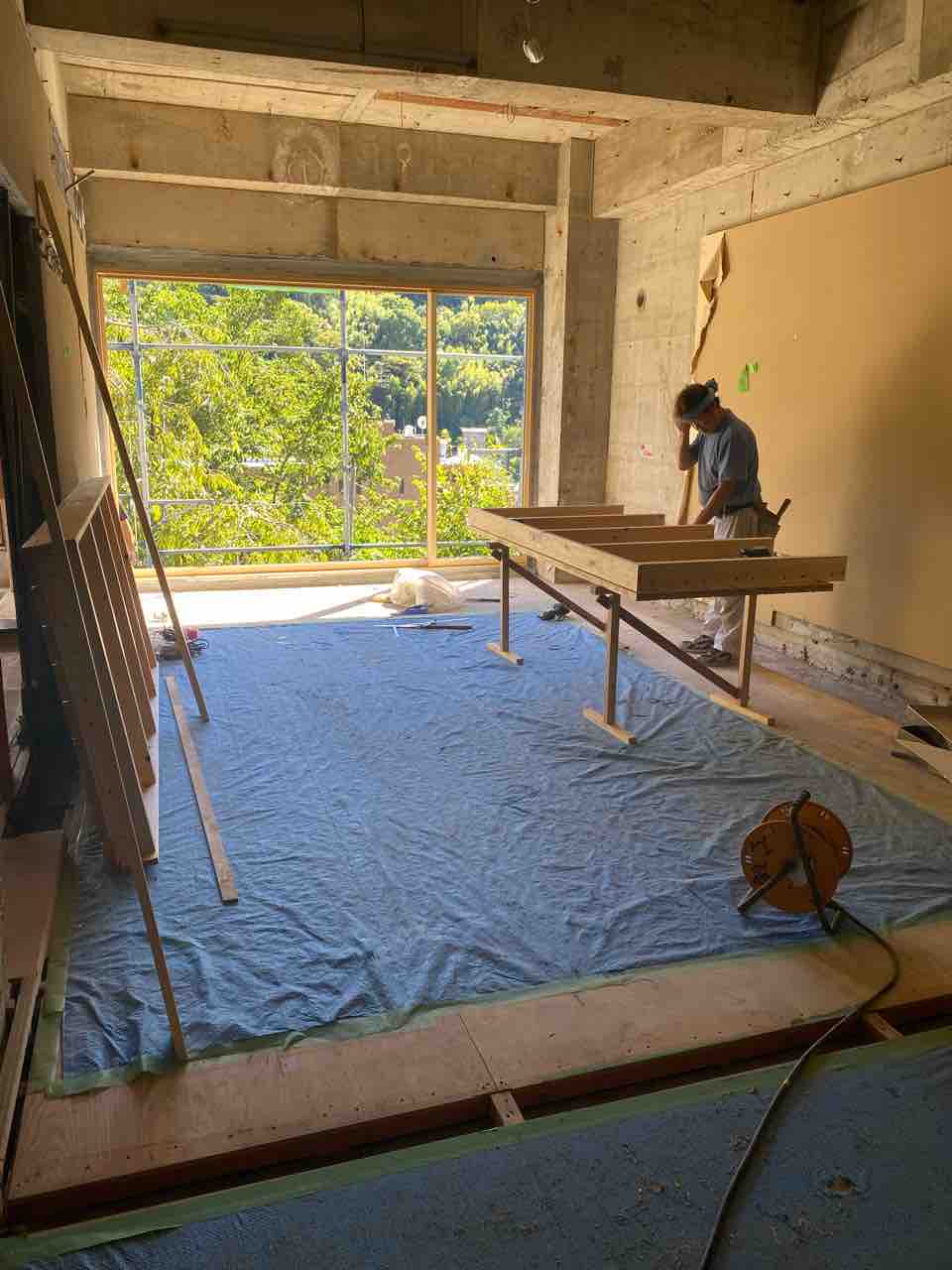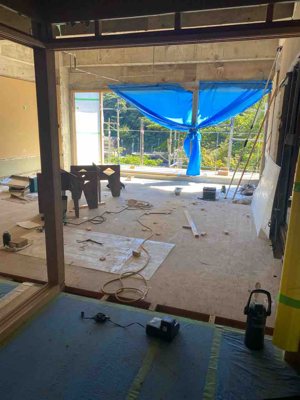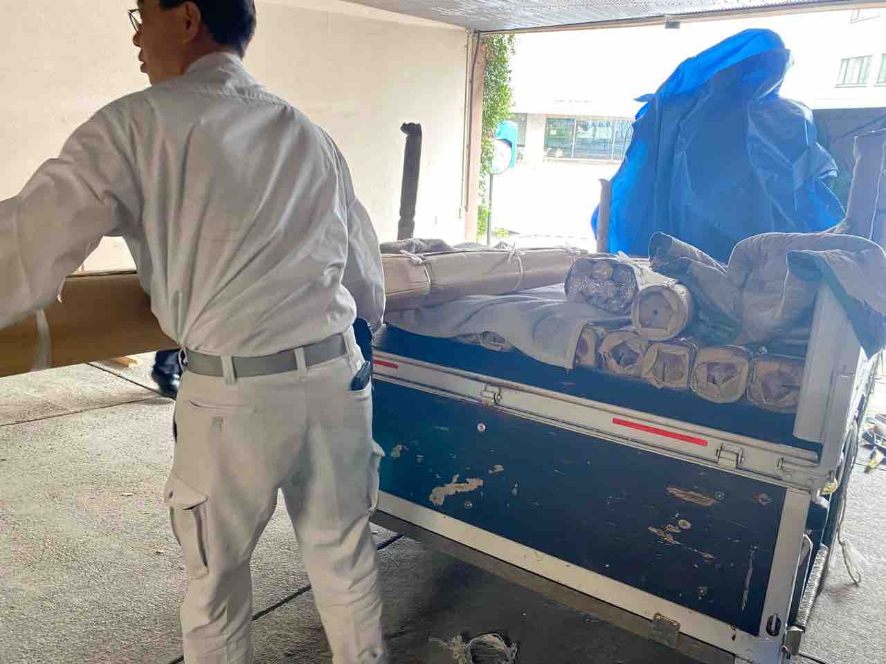 201号室と202号室に運びます。 201号室はとても開放的です。(とゆーか、窓も壁もない) 今日は3階の電気の基盤をかえるため 停電状態です。フロントは真っ暗。冷房もかからないという中でお留守番電話番の偉い私です(誰も褒めてくれないので…) ちなみに今日の202号室はこちら。なんという開放感
