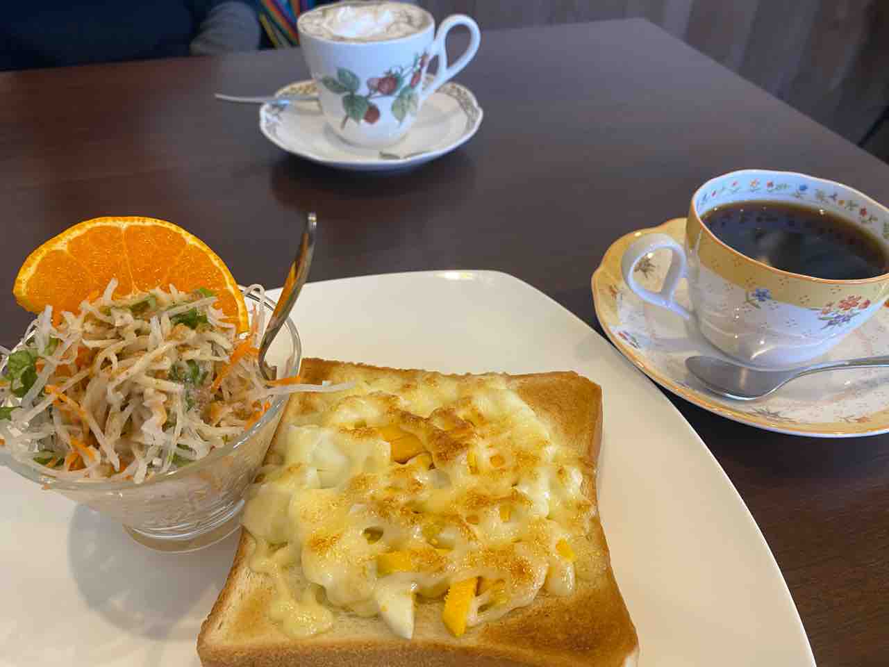 ウェンズデーさんは優しいので11時半までモーニングセットやっています。 ゆで卵とサラダ、トーストとコーヒーがついて600円なんです。 だけど裏メニューがありましてお願いするとゆで卵をつぶしてマヨネーズかけてあるんです。(向こうに見えるのは、ほうじ茶ラテ)奥様の人柄も最高 目立たないけど良いお店です