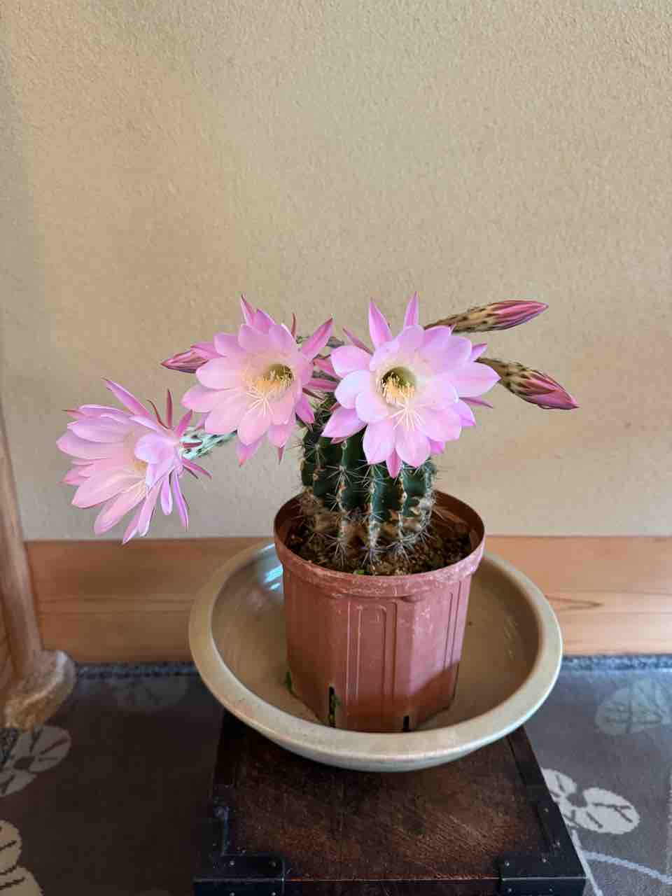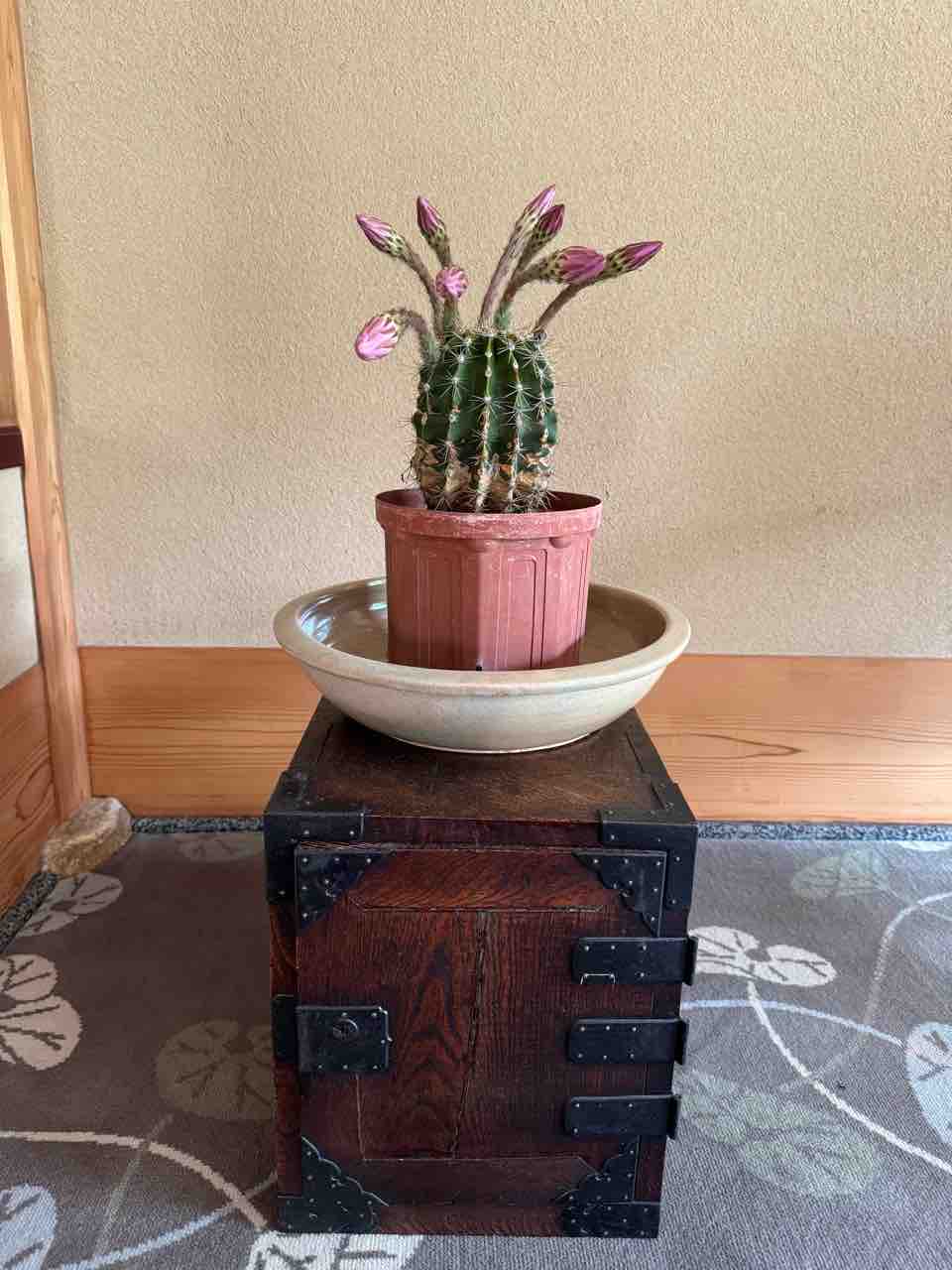 「エキノプシスオキシゴナ」サボテンの花です。 和名は旺盛丸おうせいまると言うそうです。昨日の写真↓ 今朝見たら咲いていました↓これは、大女将の弟さんが大切にしていて一番美しい時にふきやに置いてくださいました フロントにあるので見にいらしてくださいね