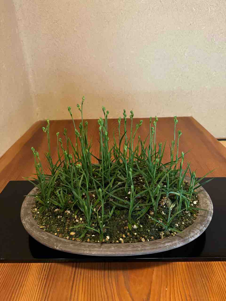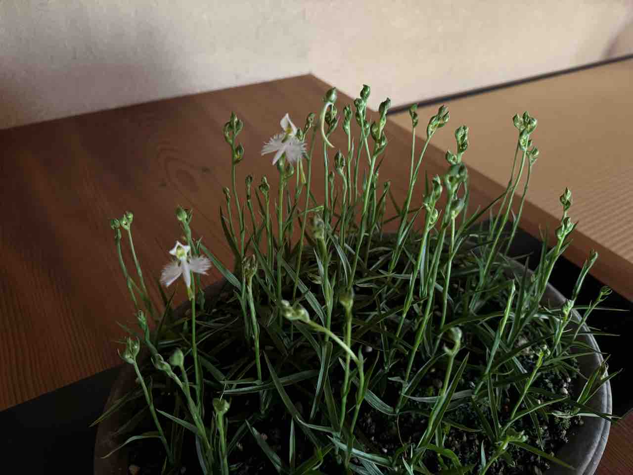 玄関に、つぼみの鷺草を置きました。心なしか元気ないみたいで太陽が当たらないせい?