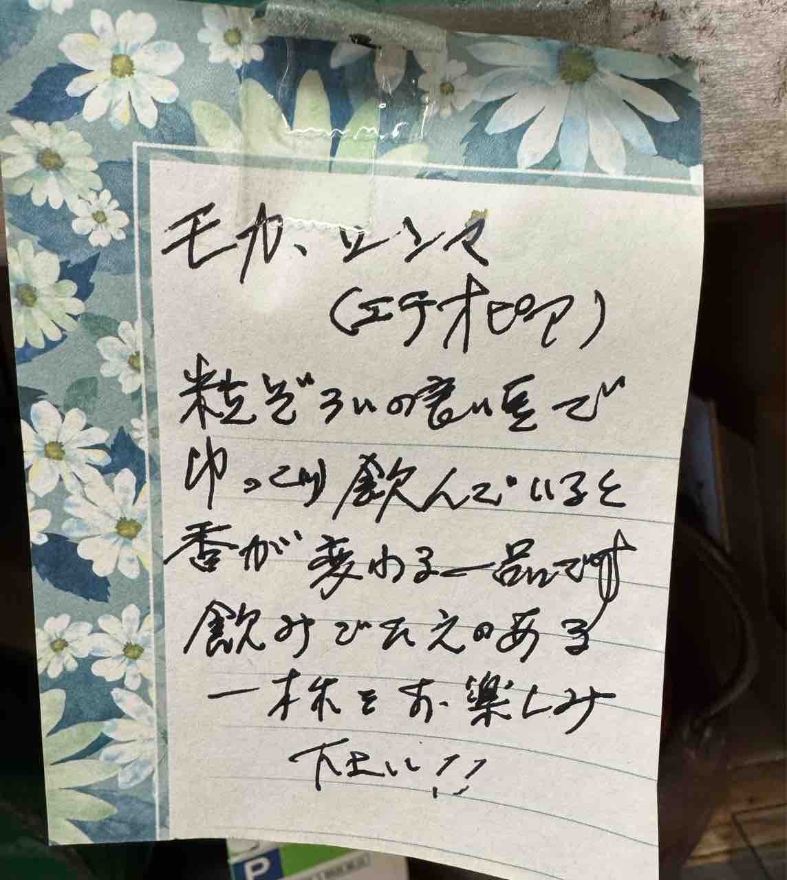 朝7時~8時までと朝食の後にサービスでお出ししている現在のコーヒーはモカシンマエチオピア産です。朝はフロントで會田雄亮(あいだゆうすけ)のコーヒーカップを使っています。 珈琲屋さんという湯河原の焙煎屋さんから 購入しております。コーヒー豆は歴史的な高騰だそうで。戦争にも関係していて世界情勢が直結しているのです。 とにもかくにもとても美味しい珈琲なので楽しみにしてくださいませ