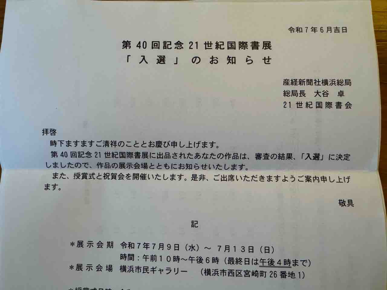 入選しました