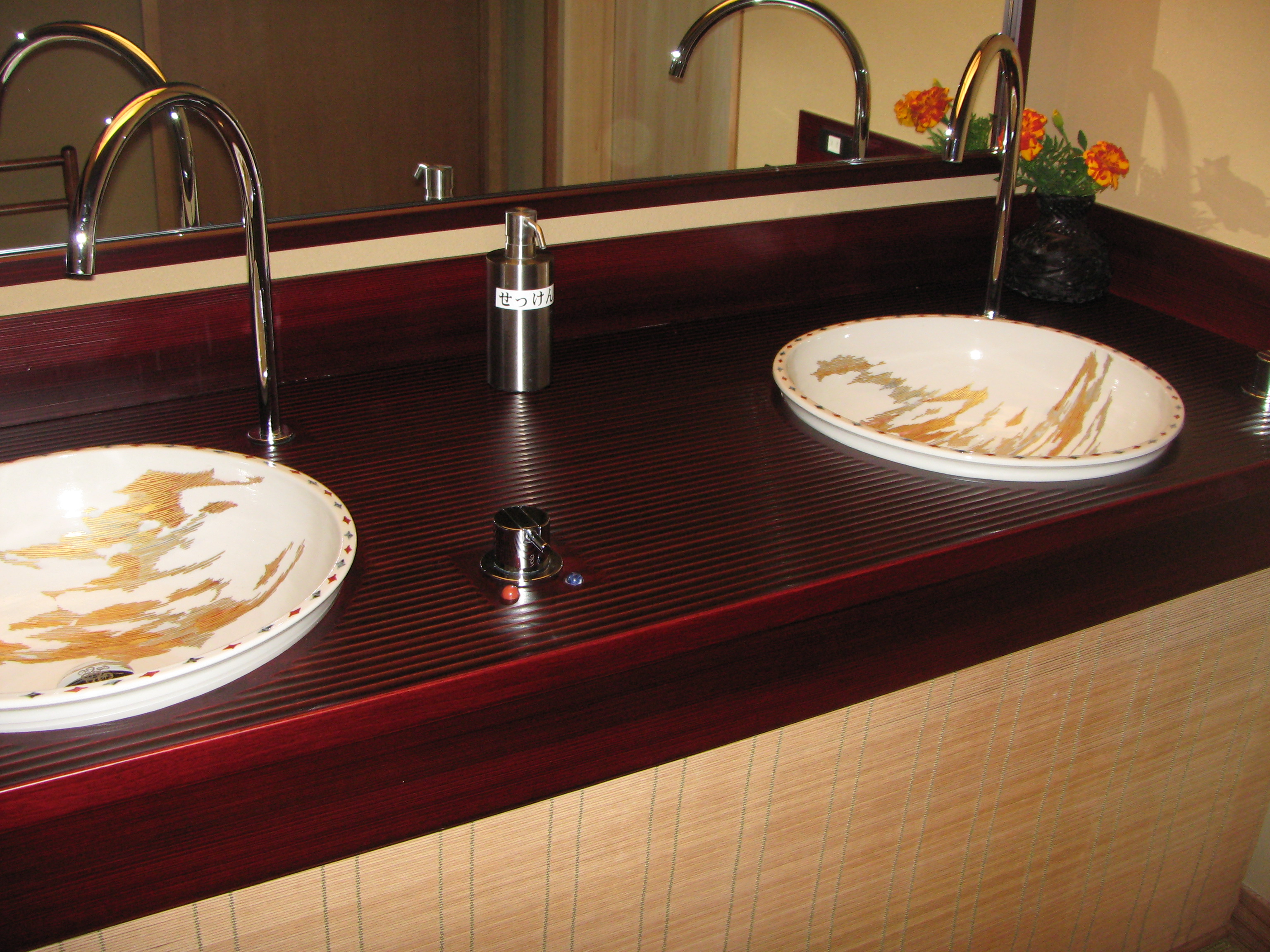 なんと洗面台を漆塗りにした部屋がいくつかあります。