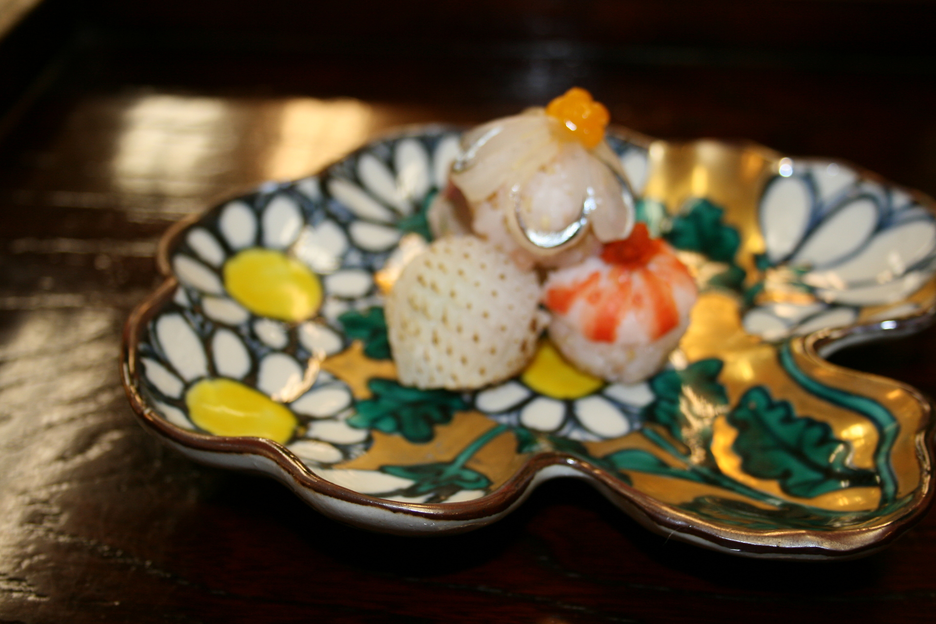 またまたこんなゴージャスな御馳走がでます。 海老、烏賊、細魚、鰺の手鞠寿司 もう、うっとりする位、美しい 平目の薄造り、肝添え 松茸とふかひれの茶碗蒸 あーよだれが・・・ と、まあほんの一部をご紹介しましたが ゴージャスでしょう~ えっ我が家は んーと、旬な食材で 秋刀魚の塩焼き