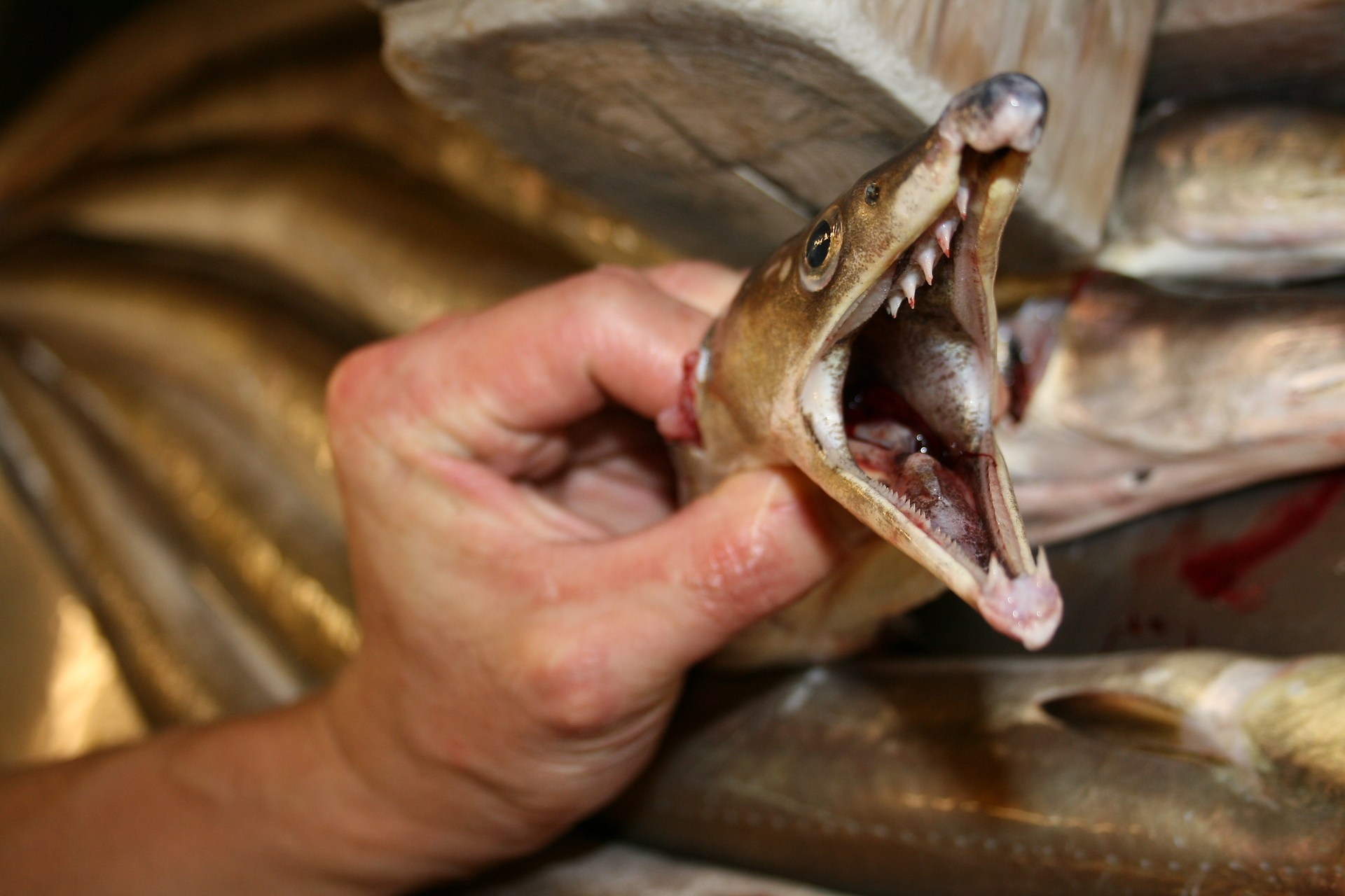 今日も調理部潜入 下ごしらえを覗き見 梨のコンポート用 前菜の南瓜のカステラ あーいい匂い 伊勢海老と煮るお豆腐は崩れないよう焼いてから煮ます。 石川芋の胡麻びんろ きれいに整列してます びっくりなのがハモ 何しろ生命力が強くて、切っても体がいつまでも動いてる この歯を見て見て 「噛まれるから気をつけて」と板前さん 何とこの心臓はこの状態でも動いているんですΣ(・ω・ノ)ノ すごい力強い感じがしますね やっぱり鱧食べると元気になる気がします((=゜エ゜=))