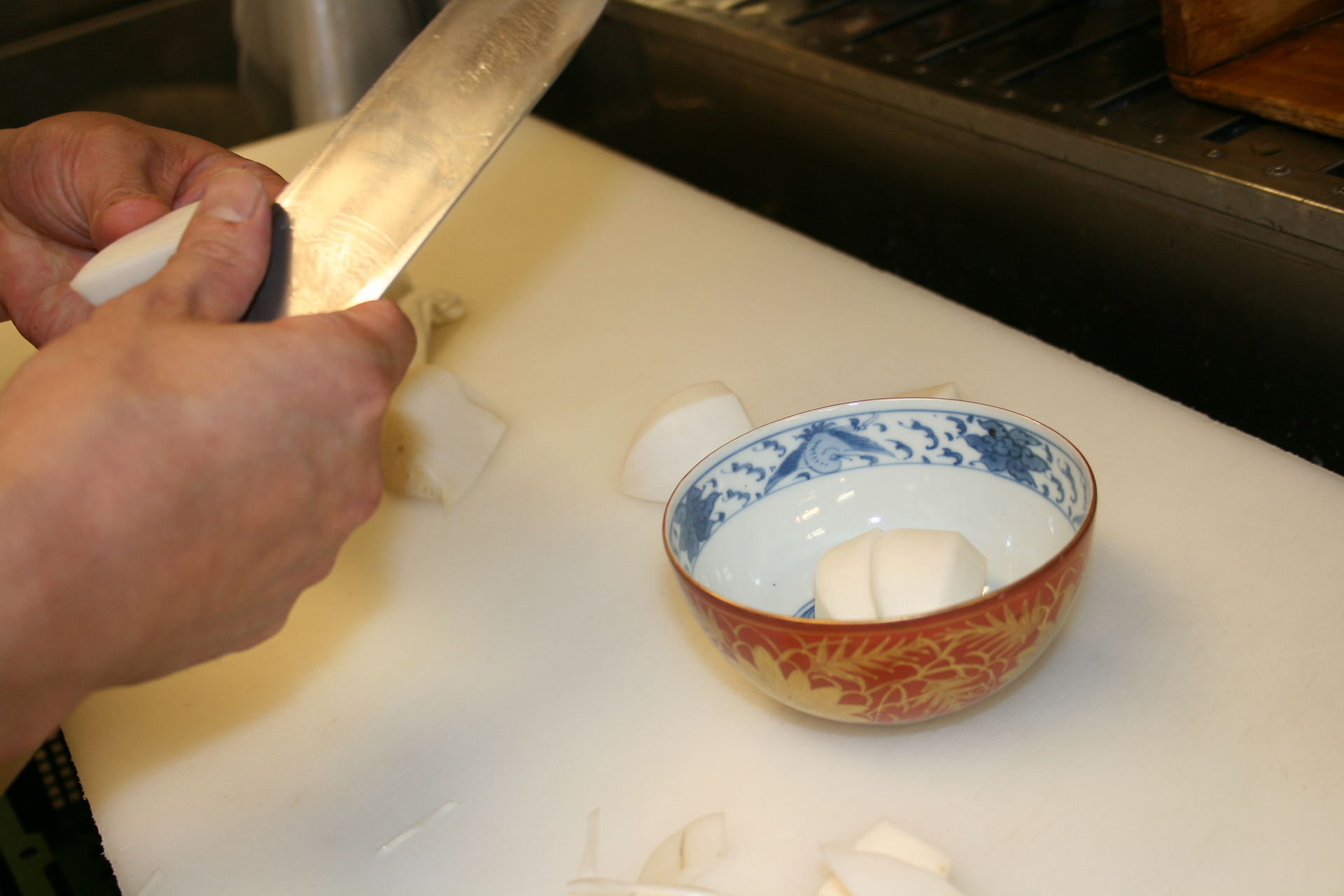 板長が生のかぶを切って器に盛ってました。
