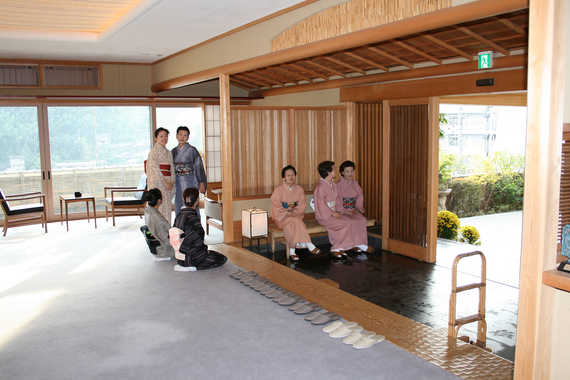 今日のお椀は かぶら茶巾 菊花すり流し 蕪の芽 関東の金町小蕪で 皮が薄く柔らかくて甘味もあります。 魚のすり身と卵白でふわりと蒸し上げ くせのないメジマグロの削り節で 蕪の甘味を生かしています。 これがアクが無い、山形産食用菊 今日もいいお天気 日差しが気持ちいい お迎え風景です。 そして今日も綺麗な 藤乃さんと紅緒さん