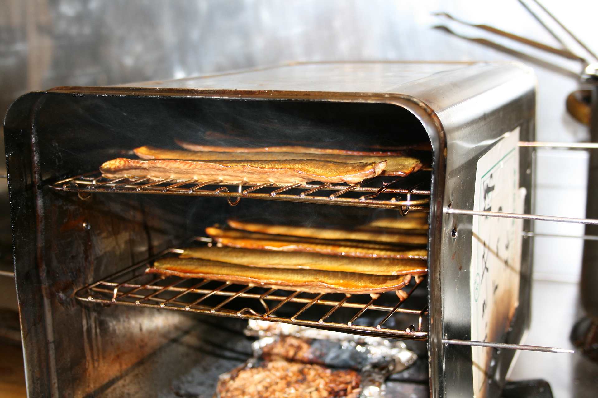 これは秋刀魚燻製を作っているところ
