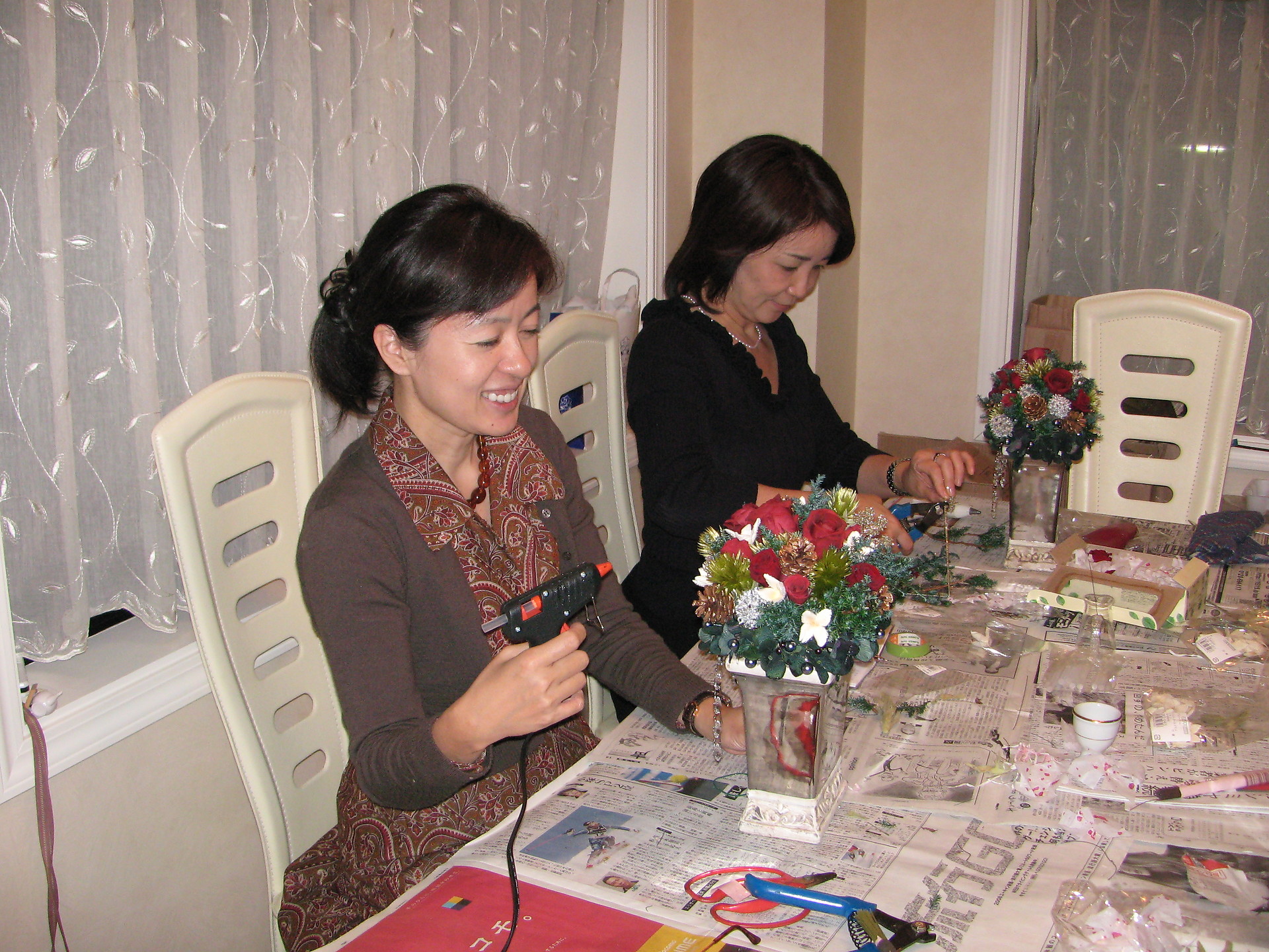 友達がフラワーアレンジメントを