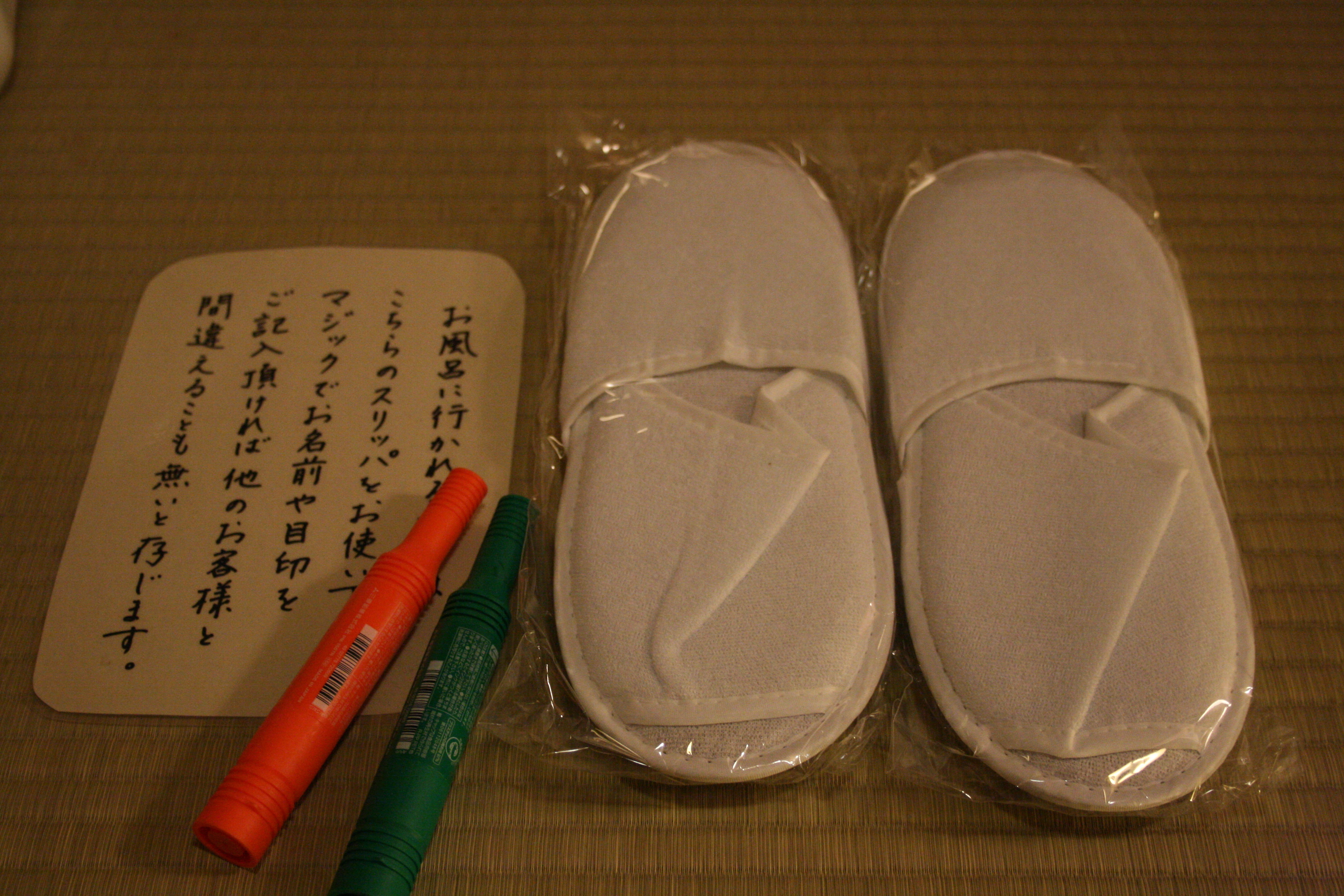新しいタオル地のスリッパをはいて頂きたく