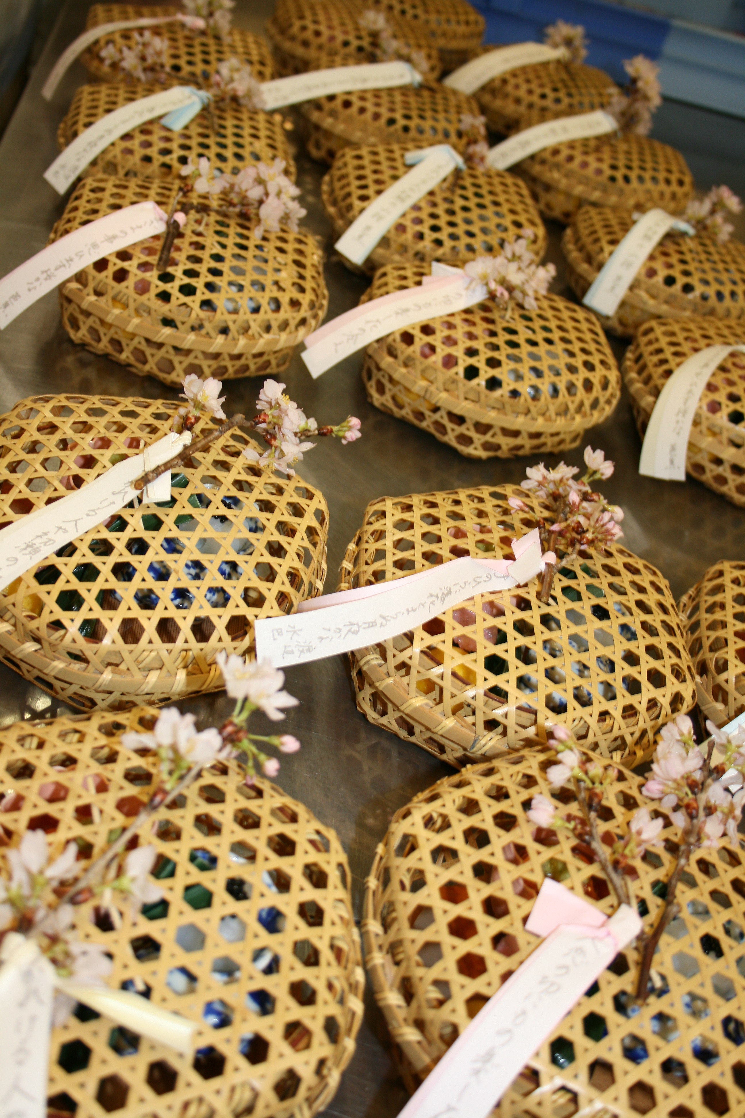 駕篭に俳句の短冊をつけます。