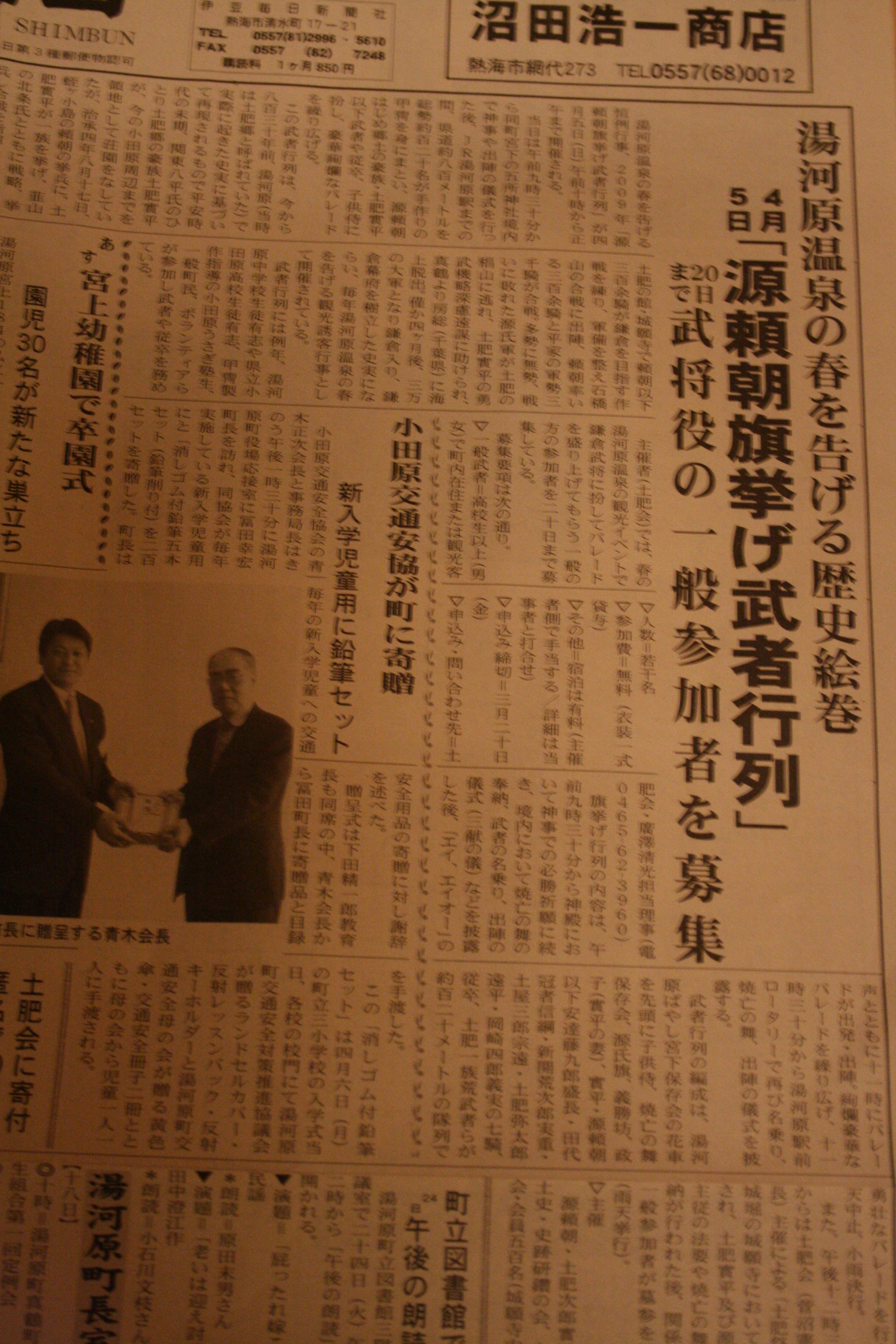 毎年4月の第一日曜日 午前10時から正午まで 五所神社から湯河原駅まで 総勢120名 甲冑を身にまとい 源頼朝始め 郷土の豪族土肥實平以下 武者や従卒、子供侍に扮し豪華絢爛なパレードを行います。 駅前の土肥實平像隣の桜の木は開花し始めました 今日のおやつは 富士かりんとう (一柳製菓) 季節限定 苺みるくです。 珈琲味や生姜味もあって レーズンピーナッツ味シナモン味ゴマ味も なり駒さん御馳走様でした
