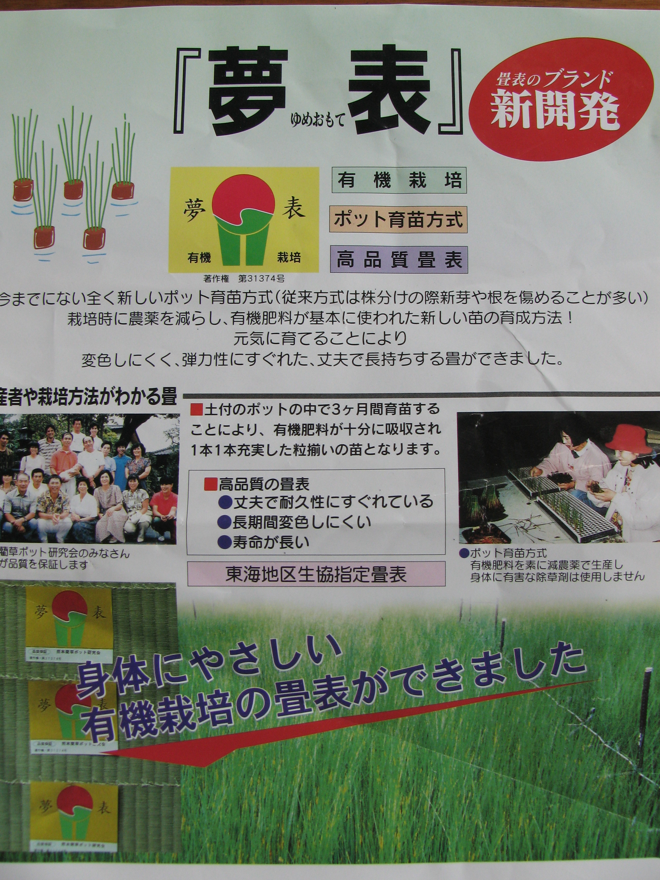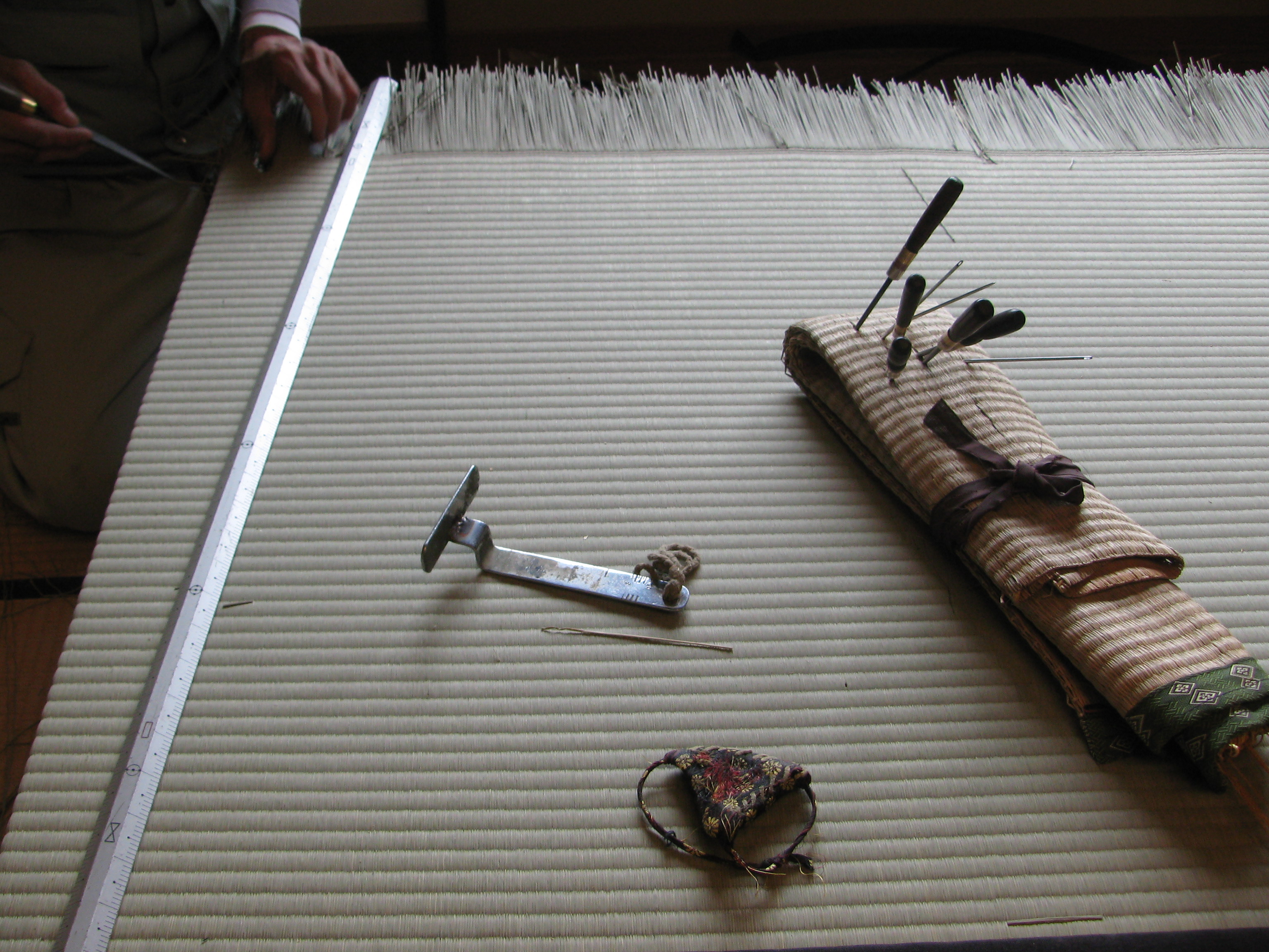 頑固一徹 畳職人 橋本さんです。 おじさんの道具 有機栽培の畳表 生産者も見えます おじさんいわく 「今は畳のへりも 柄物の化繊が多いけど、 これは無地の最高の綿ですよ。」だそうです。 ふきやの畳はすべておじさんに頼んでいるので おじさん、ずっと元気でいてね ちなみに今日畳替えしているのは410号室 次は206号室 206号室は左官屋さんが入り、 壁を塗っています。 この部屋は乾燥させてから 24日にオープン予定です。 新しい畳と綺麗な壁を堪能したい方は 24日以降に206号室をご指定下さいませ
