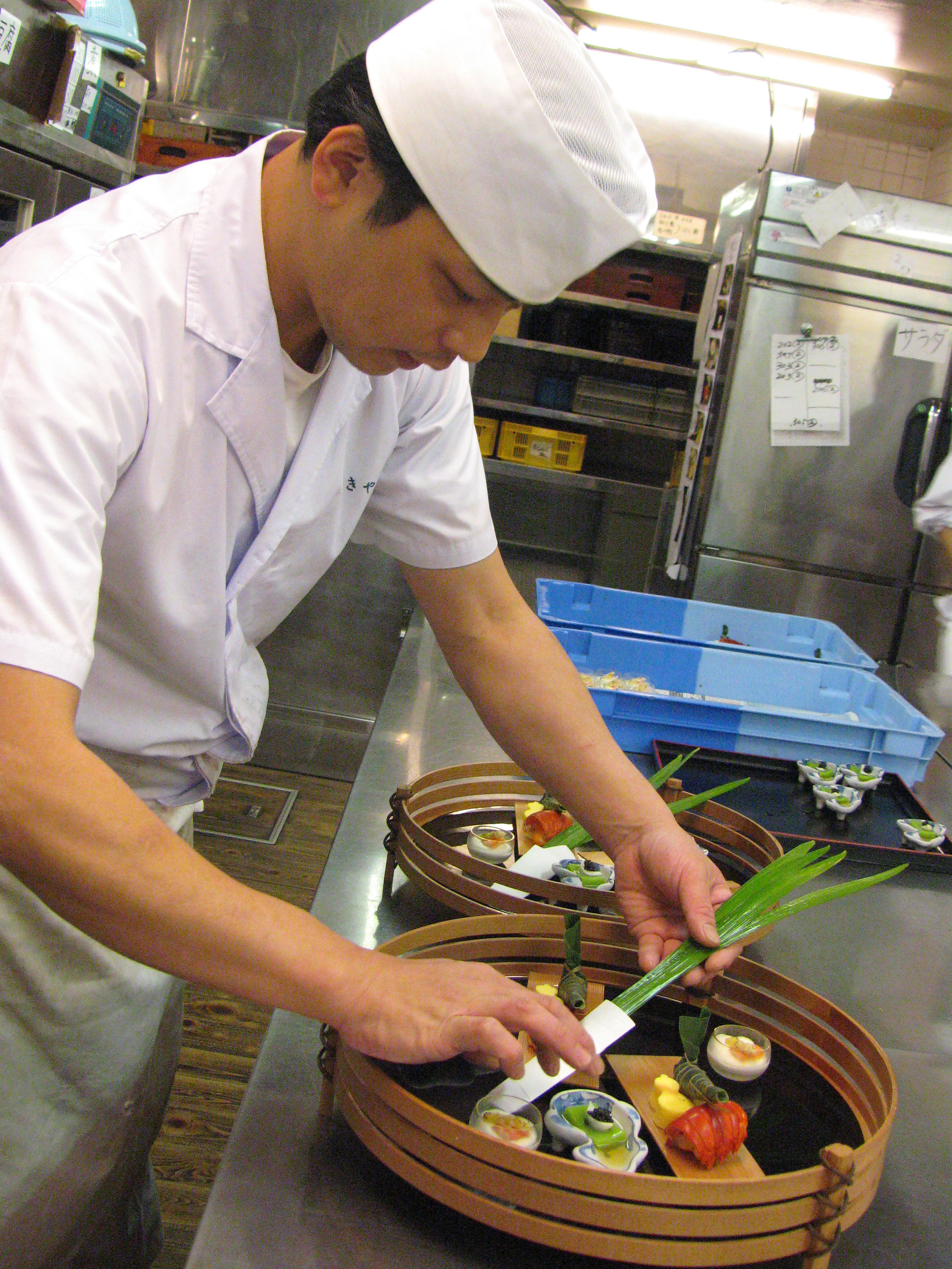 盛り付け中の板長