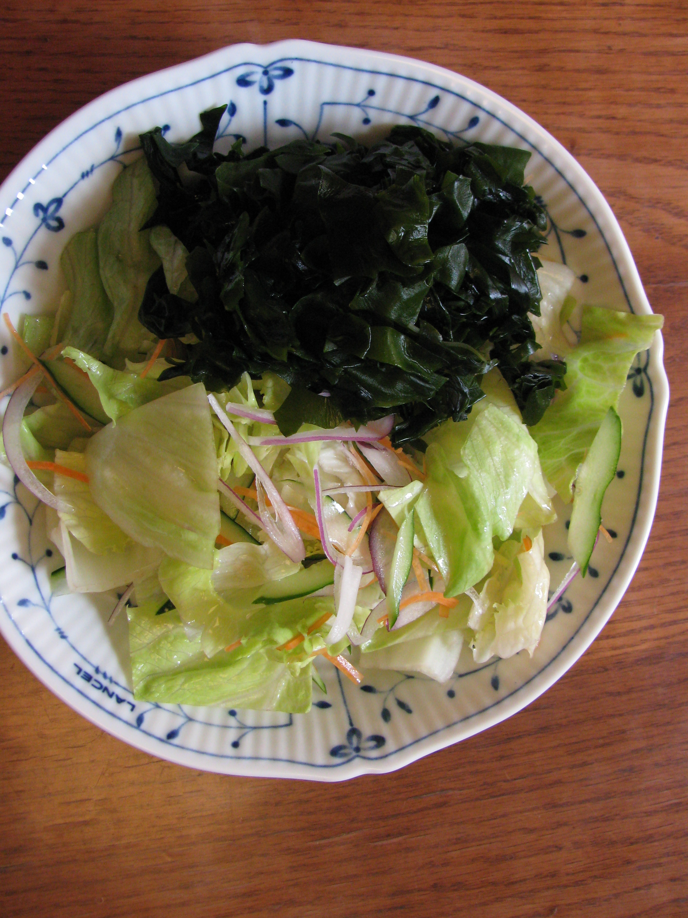 我が家の朝食用にサラダとワカメ