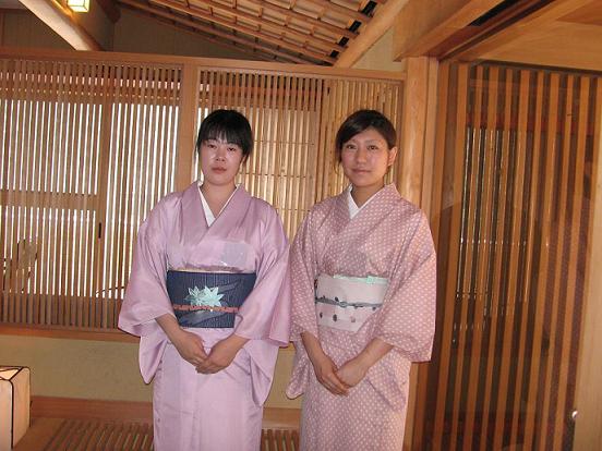 錦水館からは2人ずつ2回 4人の仲居さんが研修にきます。 第1班は のりえちゃんとなつみちゃん まだ20代のこんな若い仲居さんが入り ふきやも一段と明るくなり 番頭さん達が急に元気になった気がします (ま~足取りの軽いこと) 私はお土産に沢山頂いた 博多商店の「もみじ饅頭」をパクパク・・・ 抹茶にチョコ味にフルーツピーチ味 いろいろあるんですね