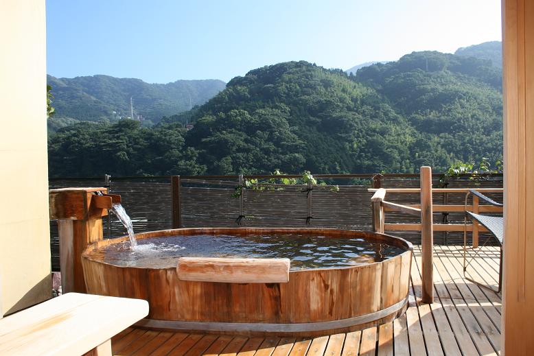 今日の3階貸切露天風呂 気持ちいい青空 入口にある骨董の壺は 京都の骨董「佃」で購入したもの。 室町時代初期の常滑焼です。 なんとこの壺の中には ド根性メダカちゃんが住んでいるのです。 強い雨にも耐え エサをあげていないのに藻を食べているらしい。 自然の循環社会でして ふきやにある 小さな「ビオトープ」の世界です
