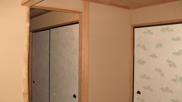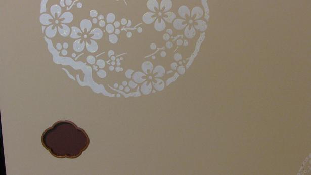 203号室の京唐紙を新しく致しました。 からかみで部屋の表情がすっかり変わっちゃって リニューアル~ 松の唐紙の「手がかり」は松 梅の唐紙の「手がかり」は梅 こちらは何とも可愛い「桐」の絵 尾形光琳も用いた伝統的な図柄だそうです(工事クン談) この部屋にいるとウキウキしてきます